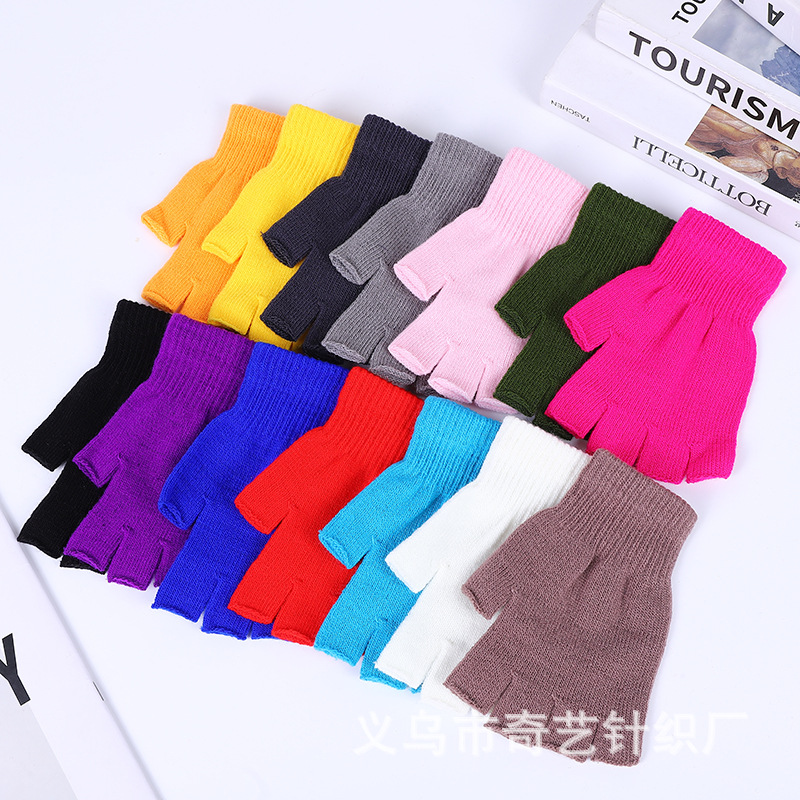 겨울 따뜻한 손가락 장갑 제조 업체 도매 재고 성인 반 손가락 장갑 겨울 손가락 니트 반 장갑