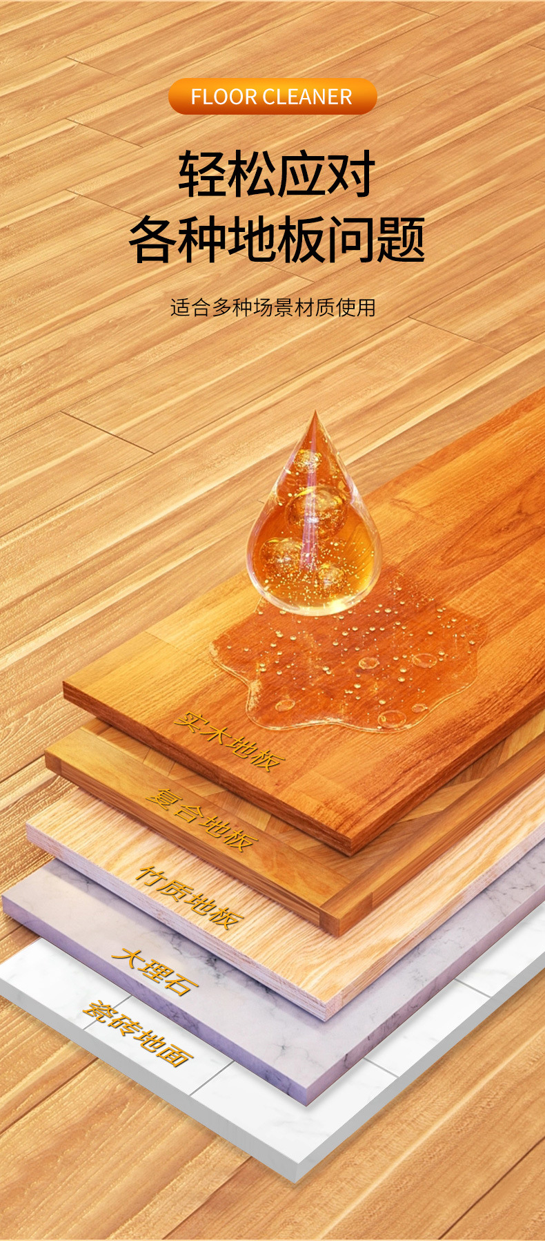 Mu Leng 바닥 청소기 가정용 세라믹 타일 및 목재 바닥 오염 제거 및 탈지 청소 솔루션 빠른 건조, 건조 및 밝기