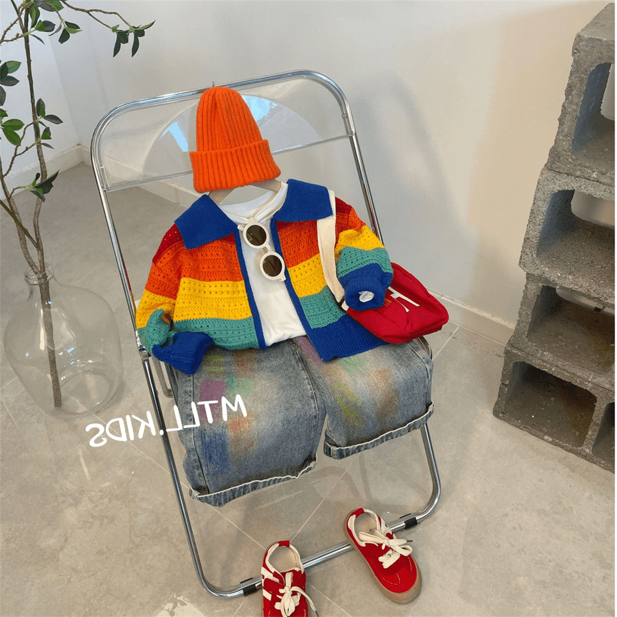 소년의 트렌디 한 컬러 매칭 니트 스웨터 소년 2025 가을 새로운 어린이 캐주얼 긴 소매 카디건 탑