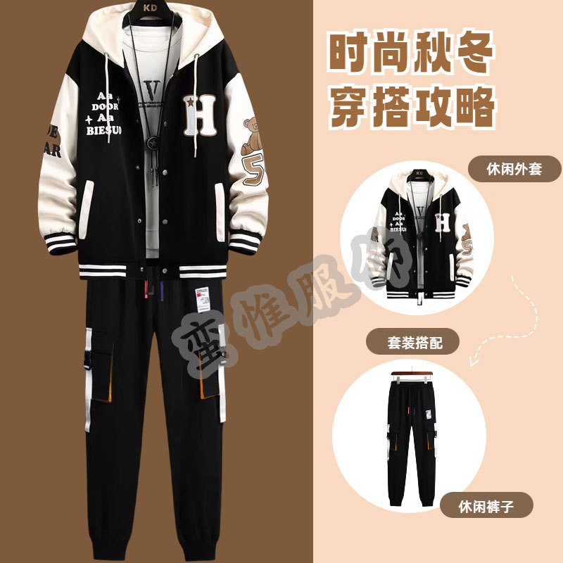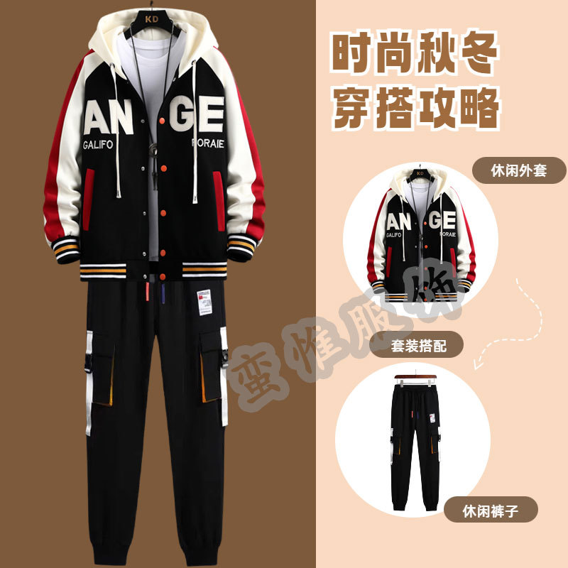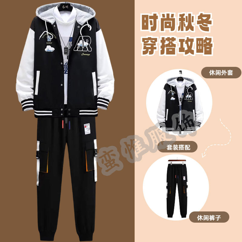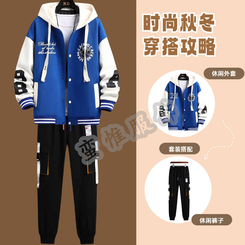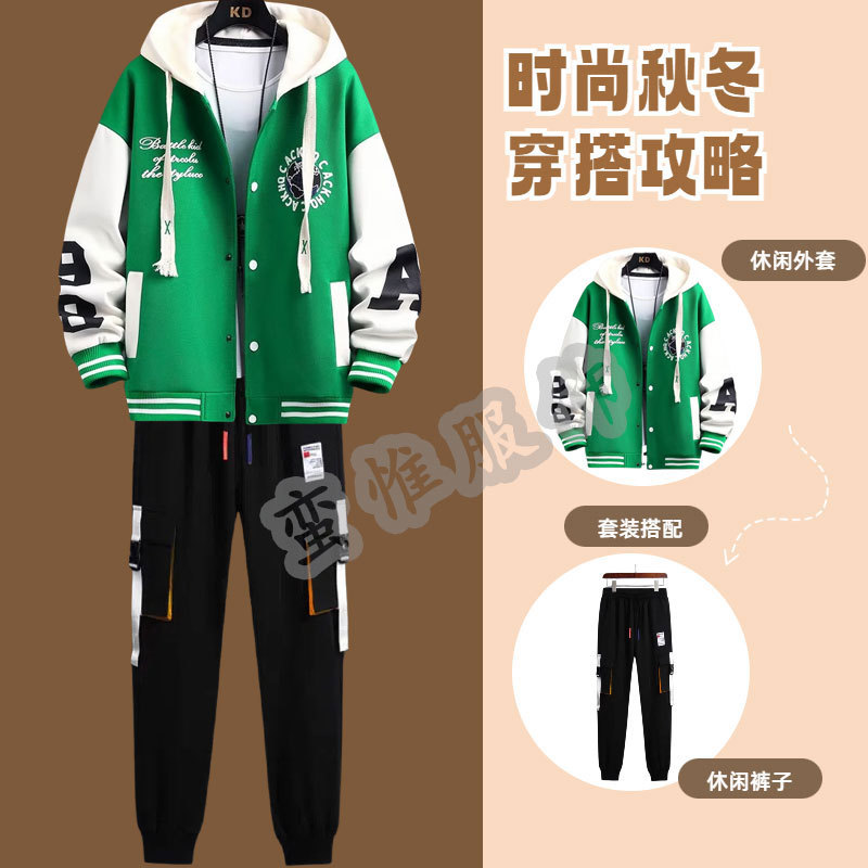 봄과 가을 코트 크록 바지 남자 후드 야구 옷 소년 주니어 고등학생 세트 십대 빅 키즈 남성복