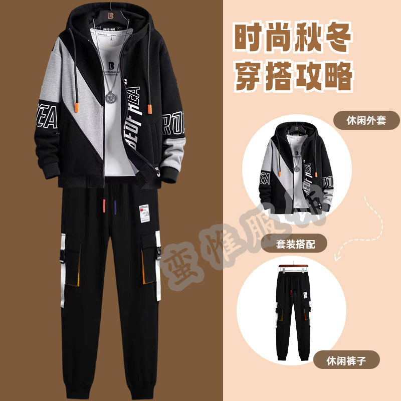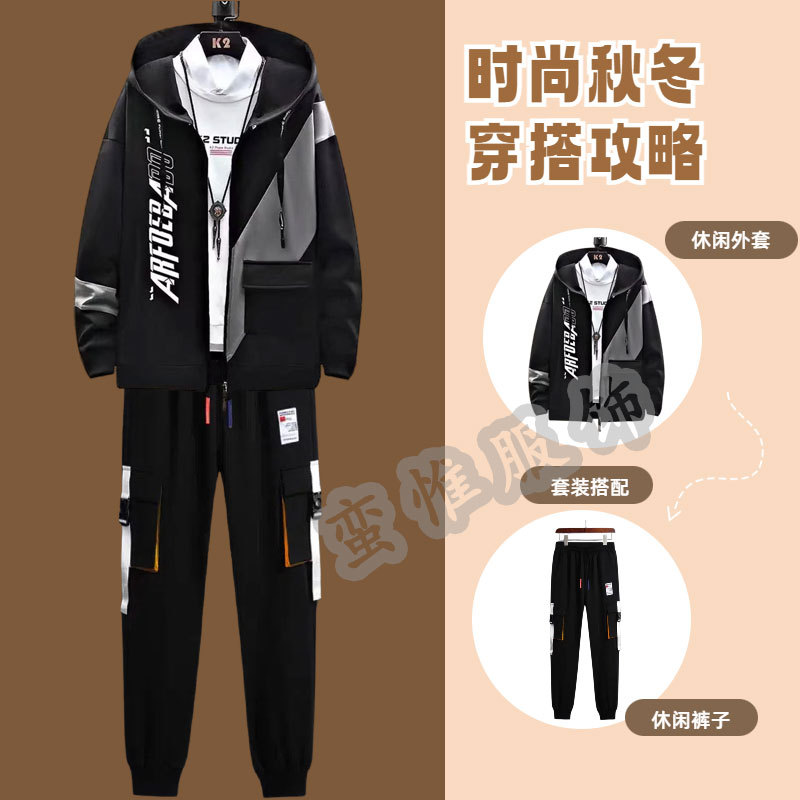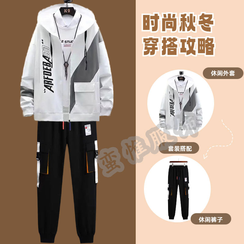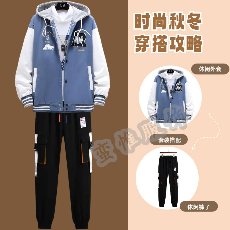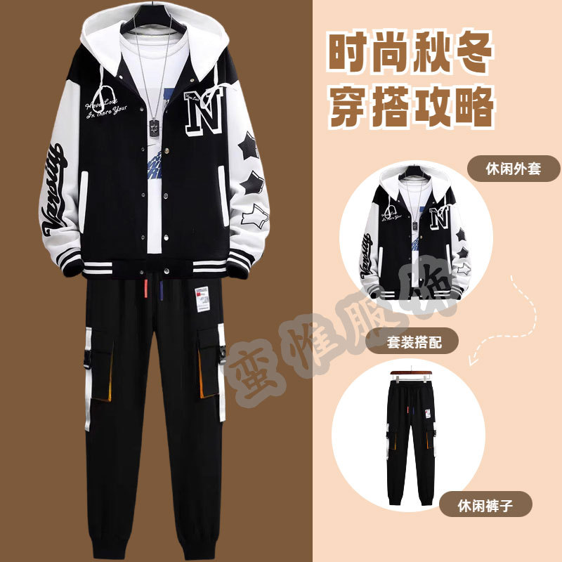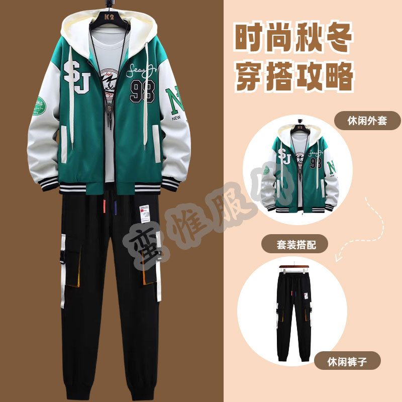 봄과 가을 코트 크록 바지 남자 후드 야구 옷 소년 주니어 고등학생 세트 십대 빅 키즈 남성복