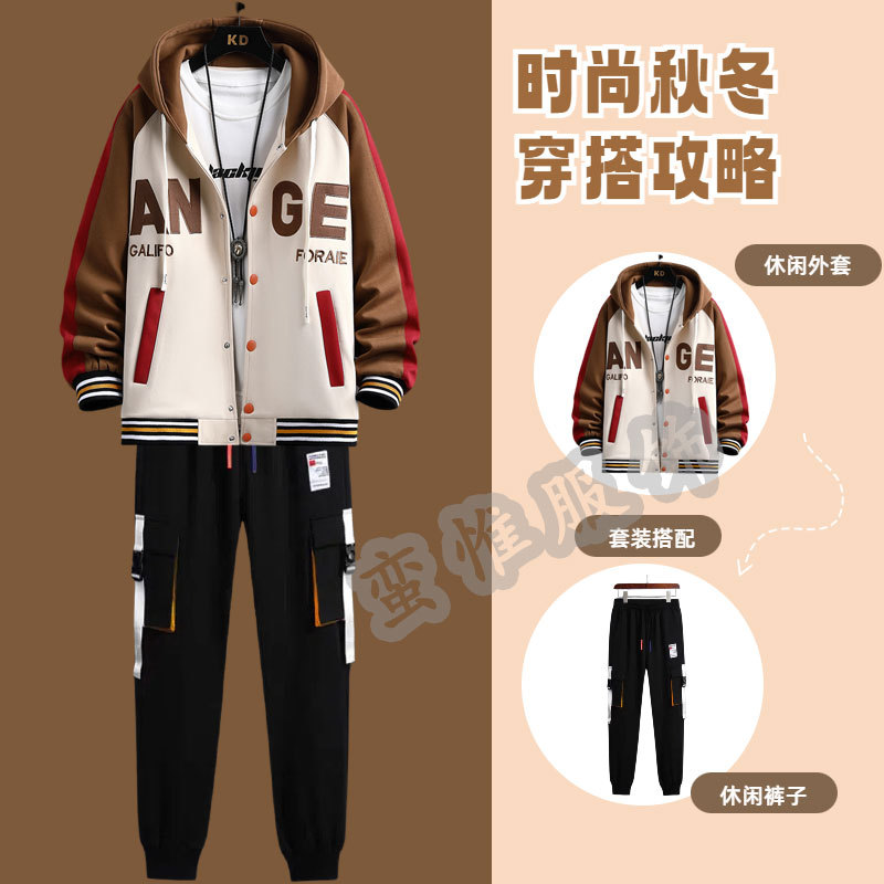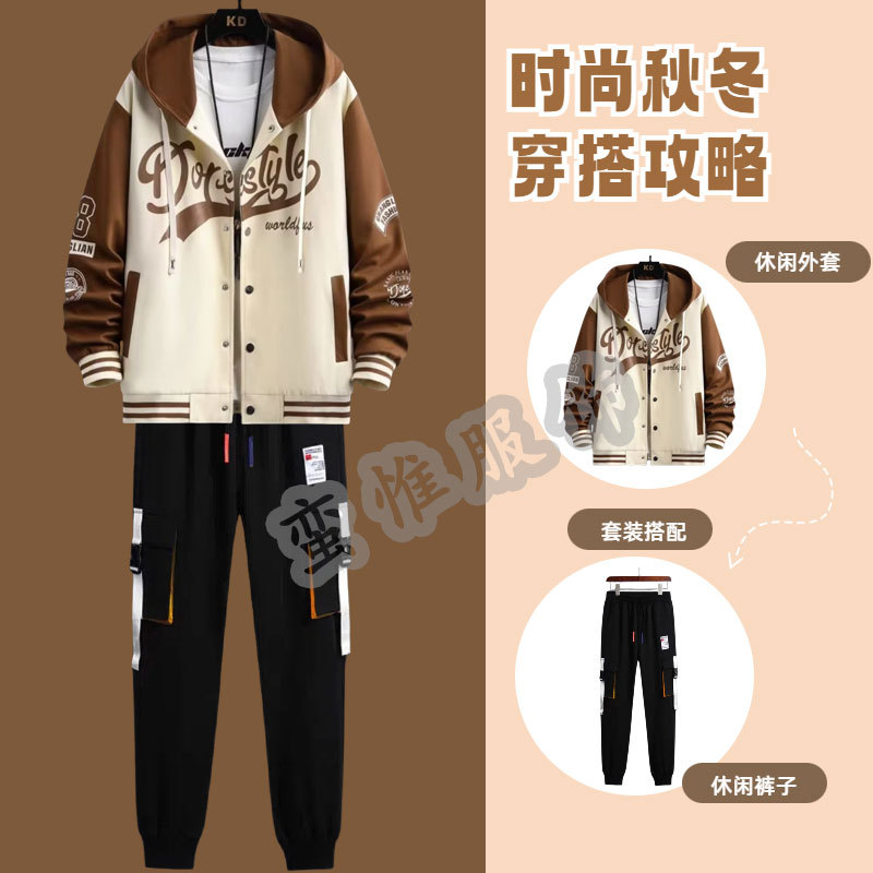 봄과 가을 코트 크록 바지 남자 후드 야구 옷 소년 주니어 고등학생 세트 십대 빅 키즈 남성복스토어 가기