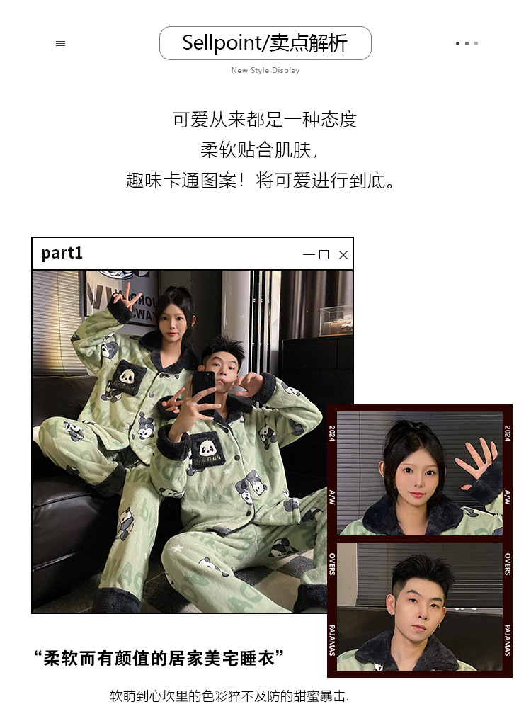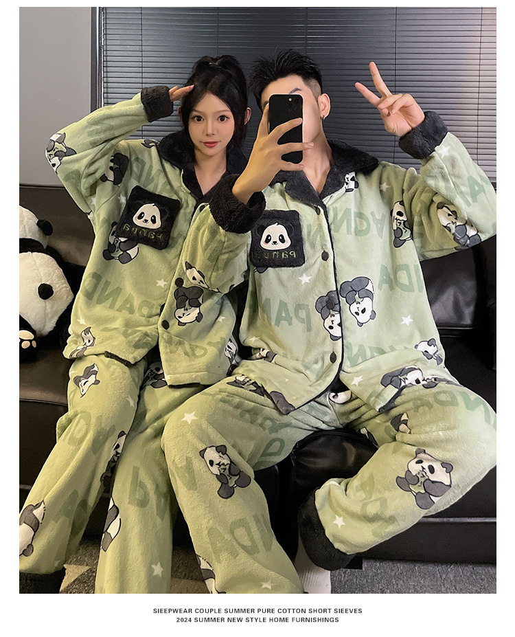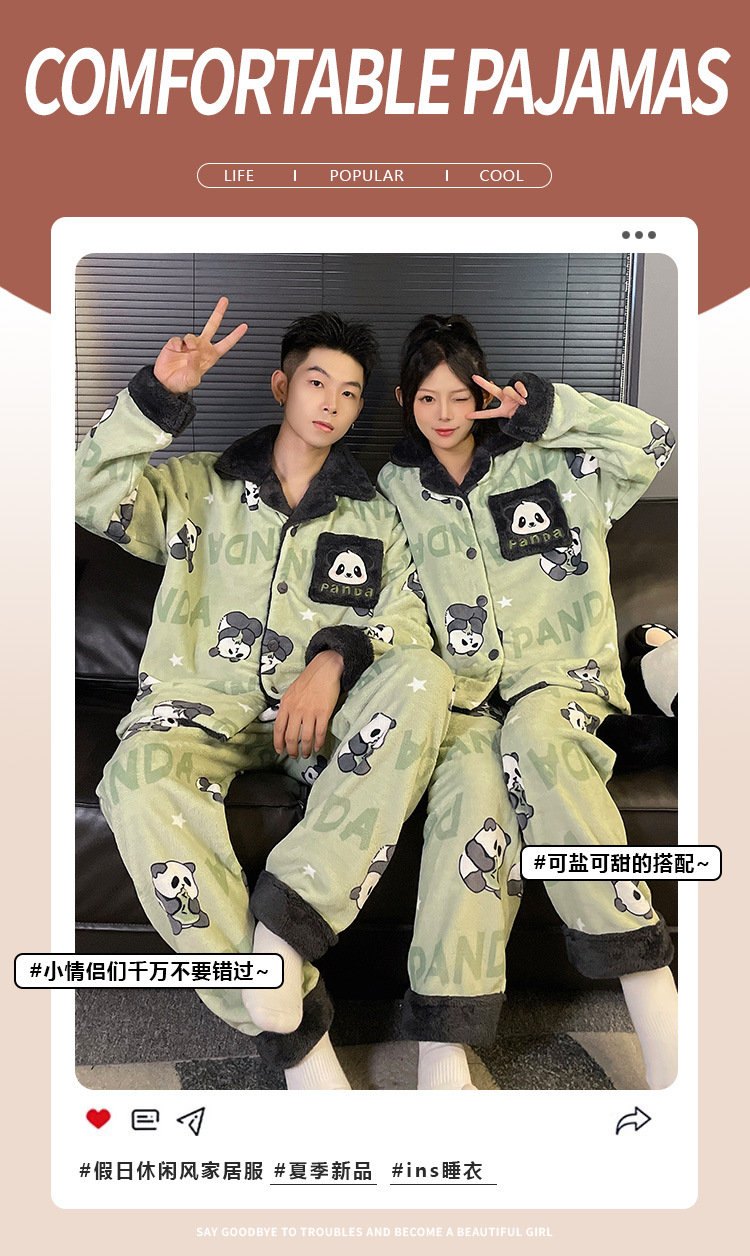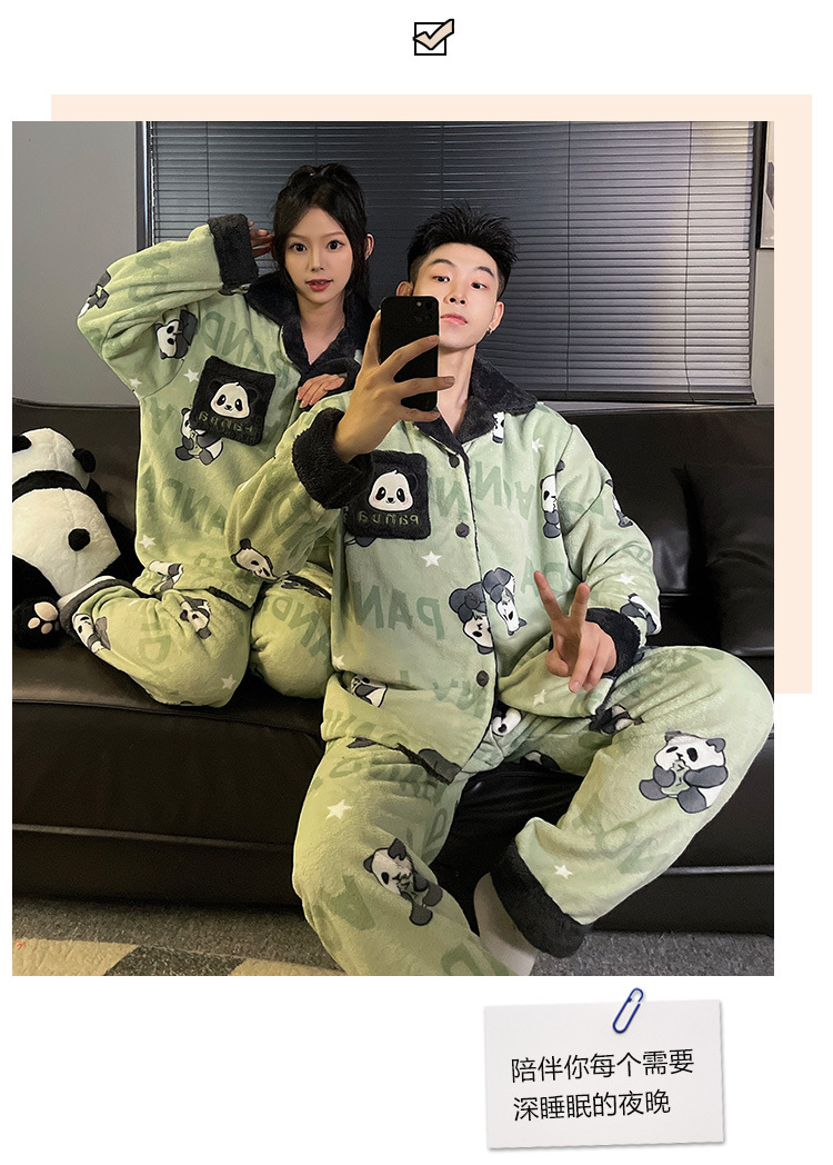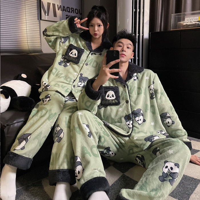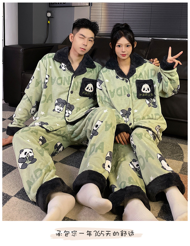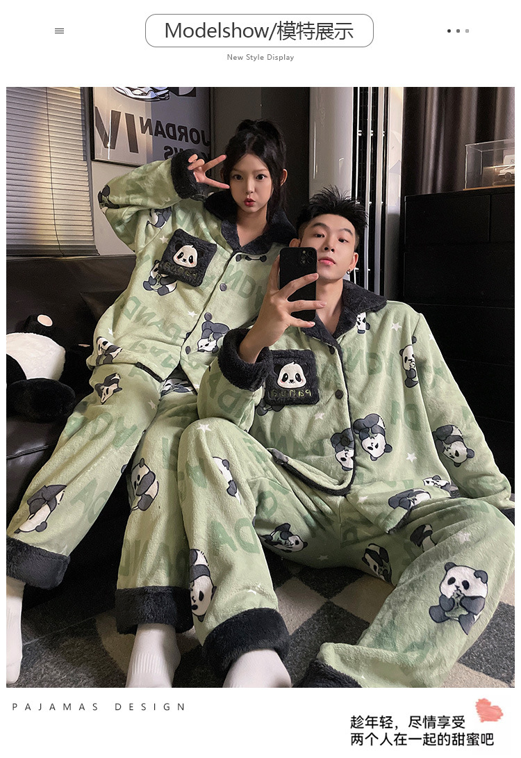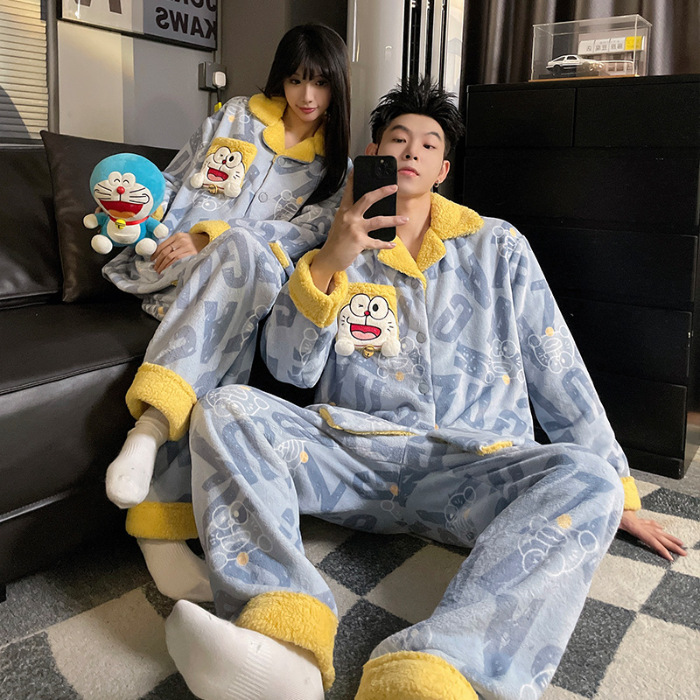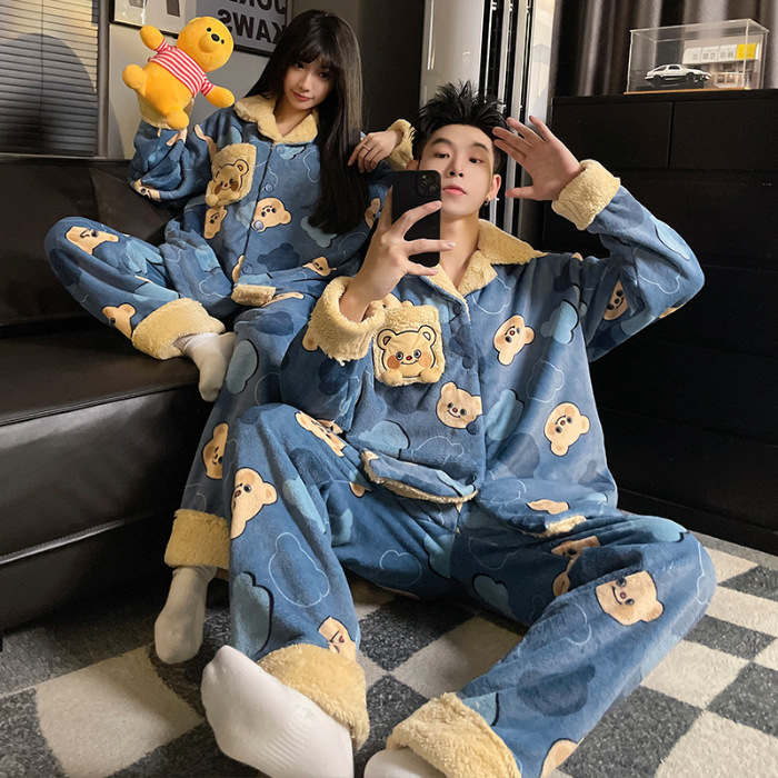 커플 잠옷 여성의 가을과 겨울 두꺼운 플란넬 캐주얼 만화 투피스 세트 소년 플러스 사이즈 홈 옷스토어 가기