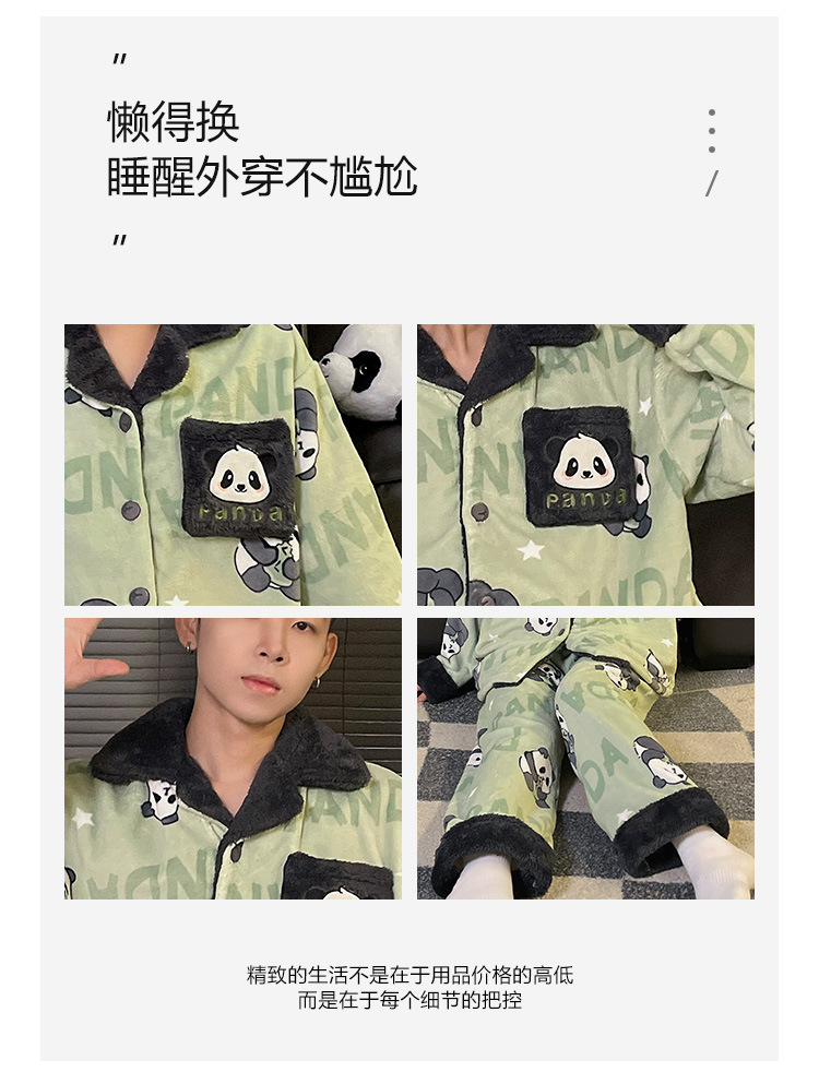 커플 잠옷 여성의 가을과 겨울 두꺼운 플란넬 캐주얼 만화 투피스 세트 소년 플러스 사이즈 홈 옷