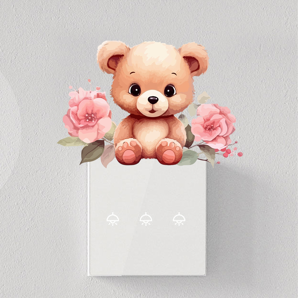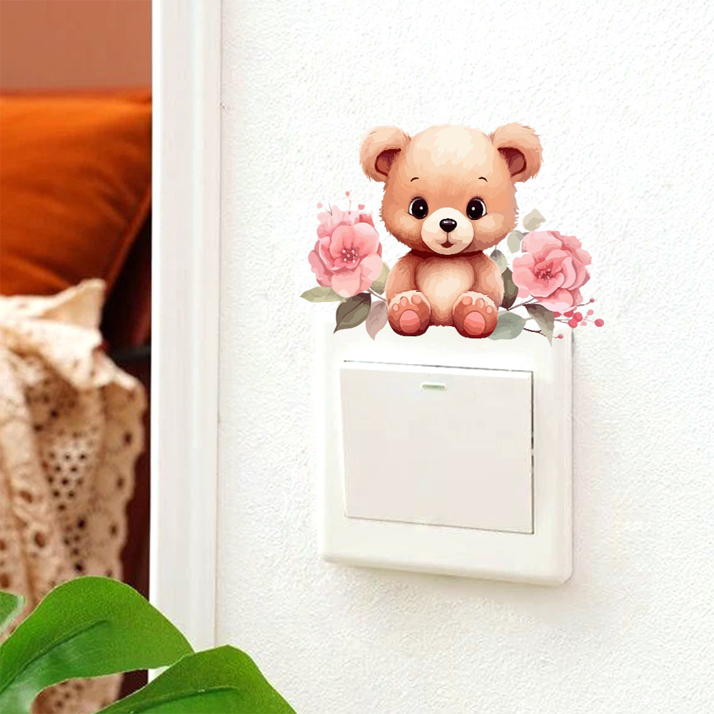 Yiyao DD151508 새로운 굿나잇 베어 꽃 스위치 스티커 거실 침실 소켓 스위치 자체 접착 스티커