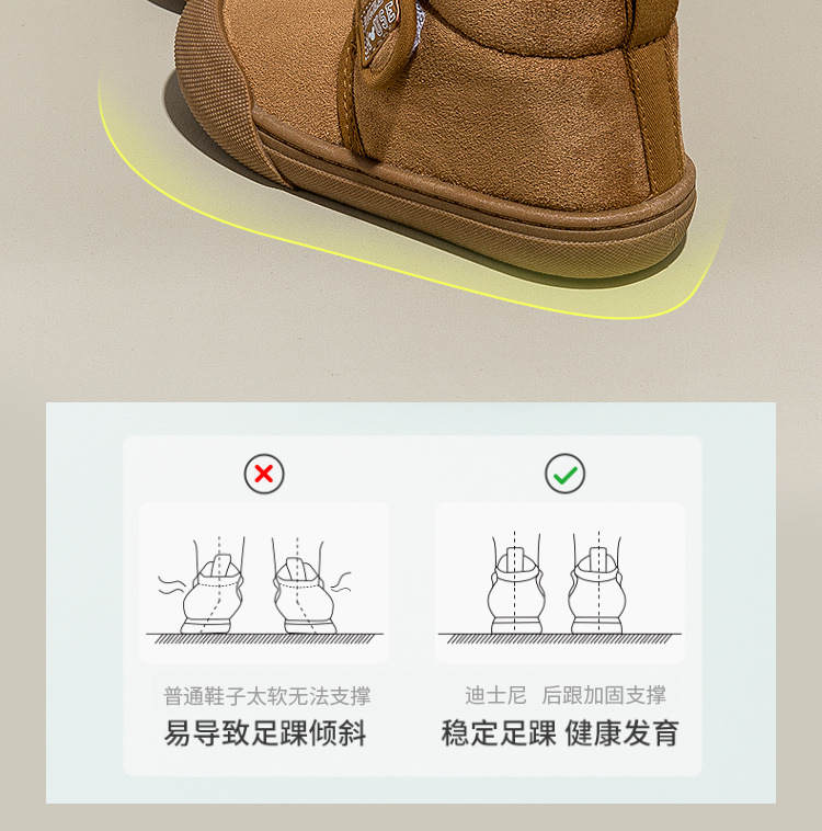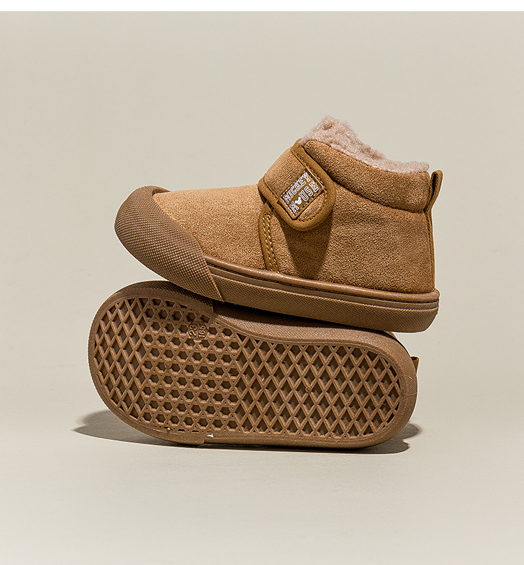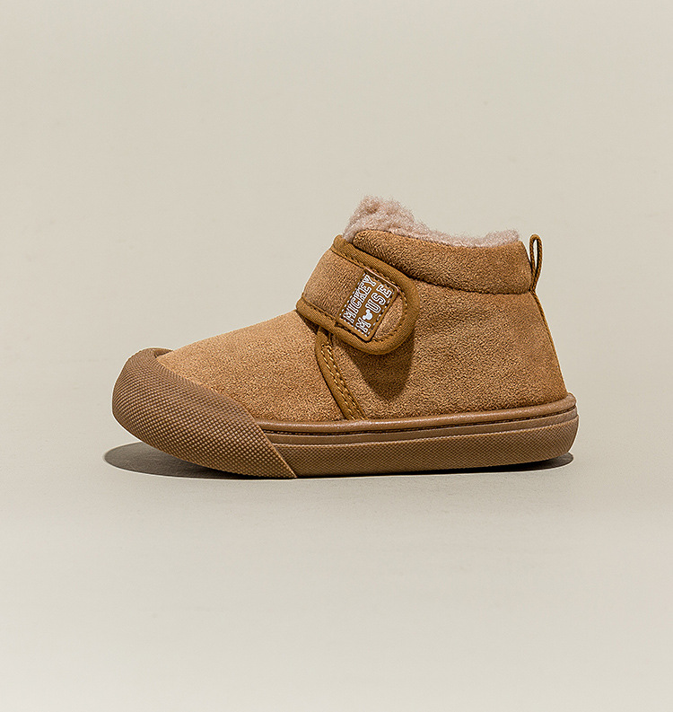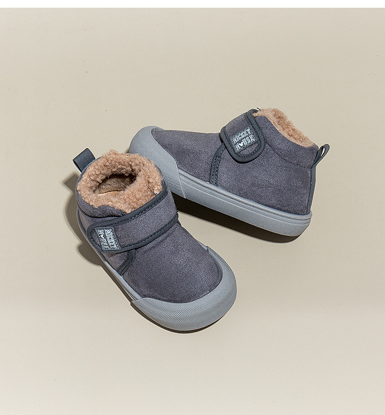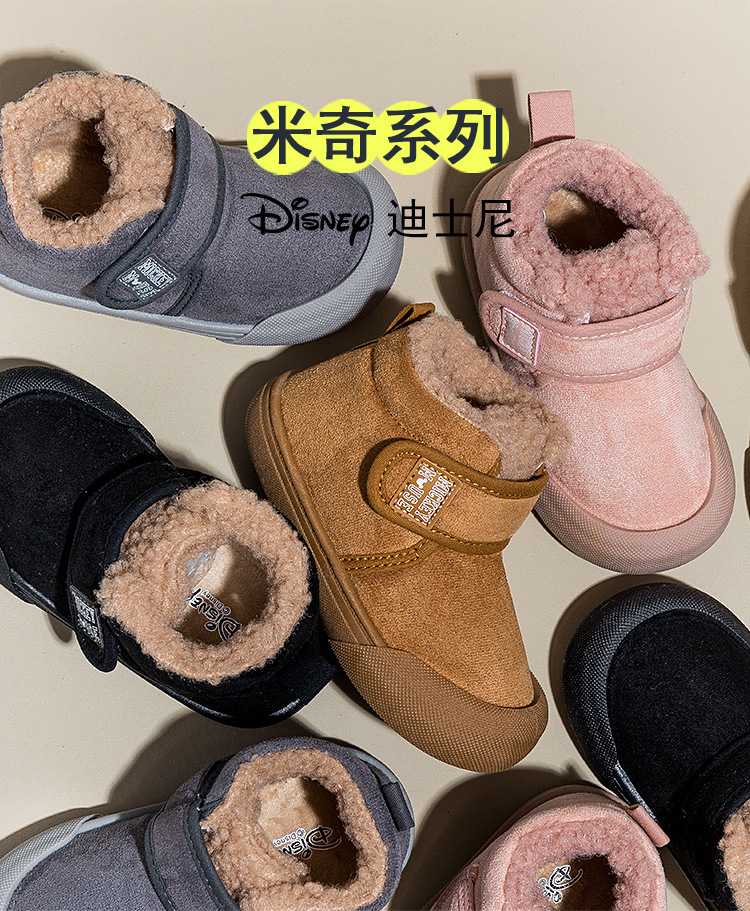 디즈니 아동 신발 겨울 신상품 플러스 벨벳 면화 신발 아기 걸음마 신발 부드러운 밑창 어린이 미끄럼 방지 실내 여아 신발스토어 가기