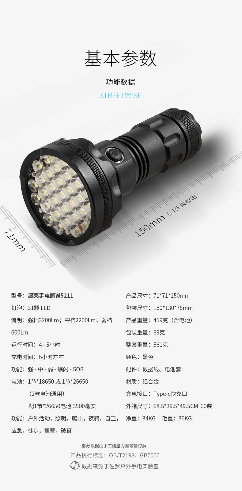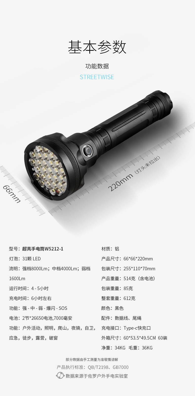 • W5211 자바 다공성 강한 빛 손전등 [31등] (짧은 스타일) [배터리 포함]