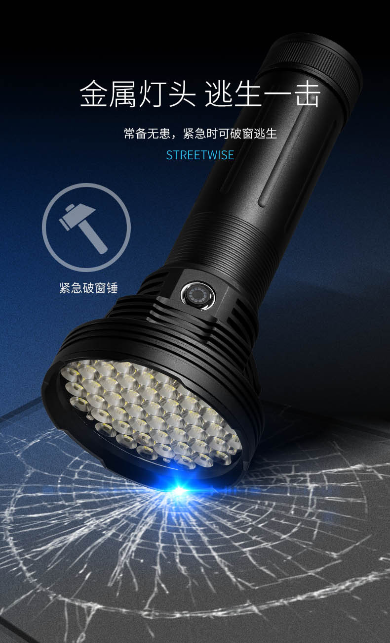 국경 밝은 야외 손전등 방수 멀티 램프 깨진 창 하이킹 캠핑 긴 지구력 손전등
