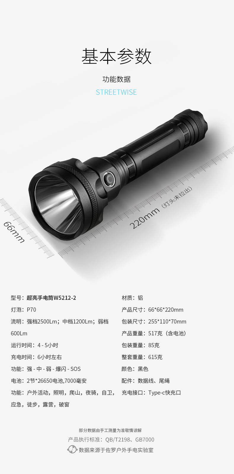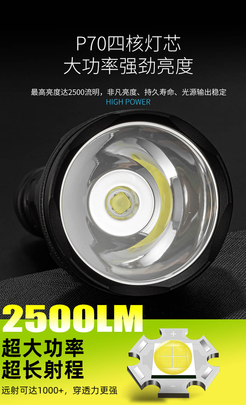 • W5212-2 Java 다공성 강광 손전등 [P70 라이트 컵] (롱 스타일) [배터리 포함]