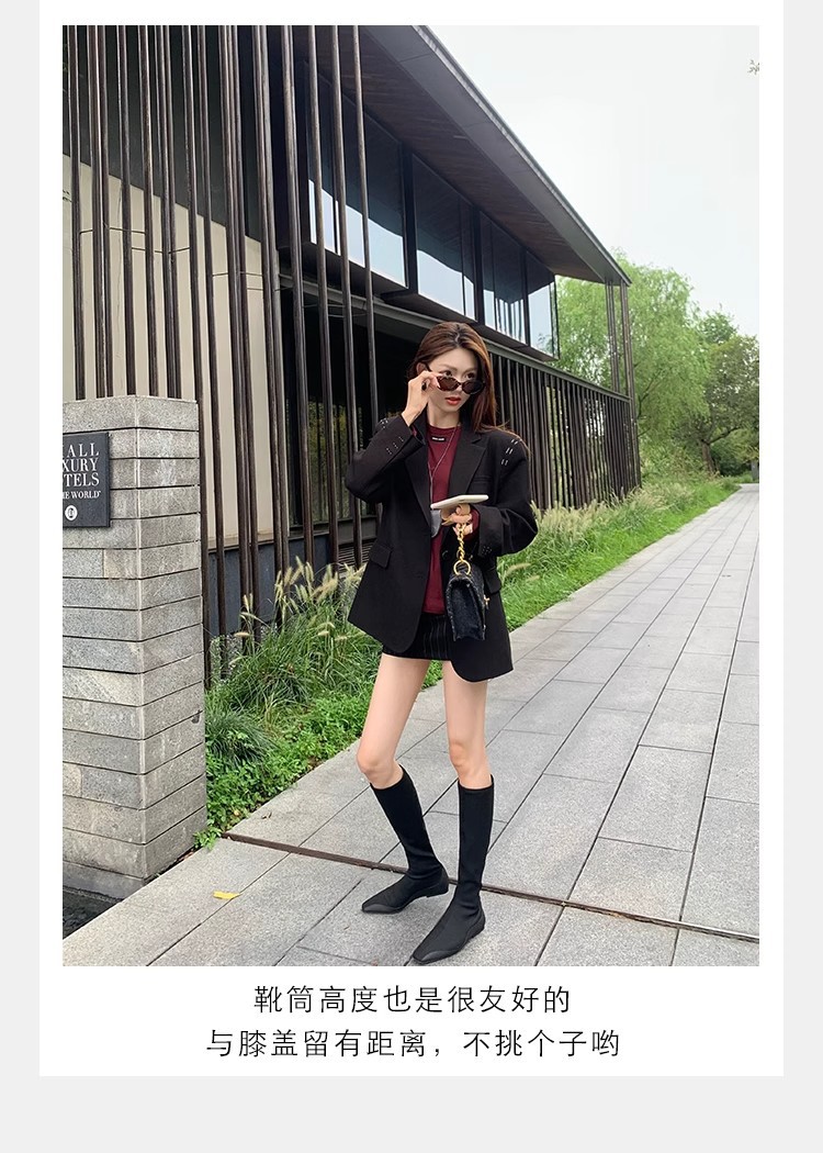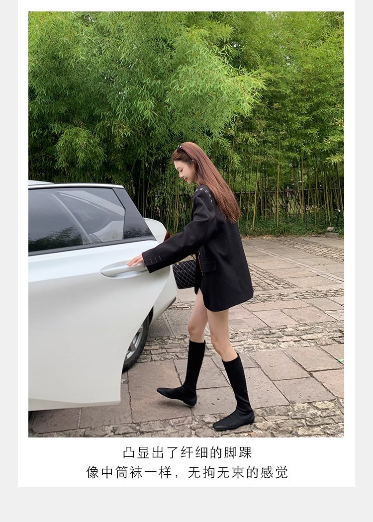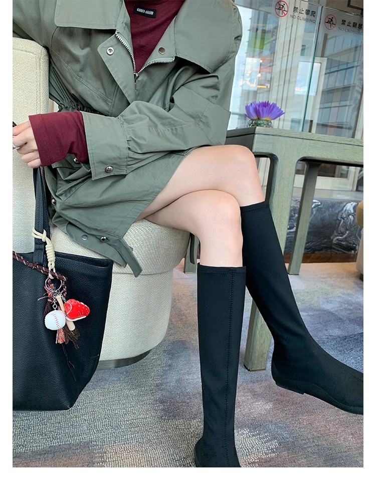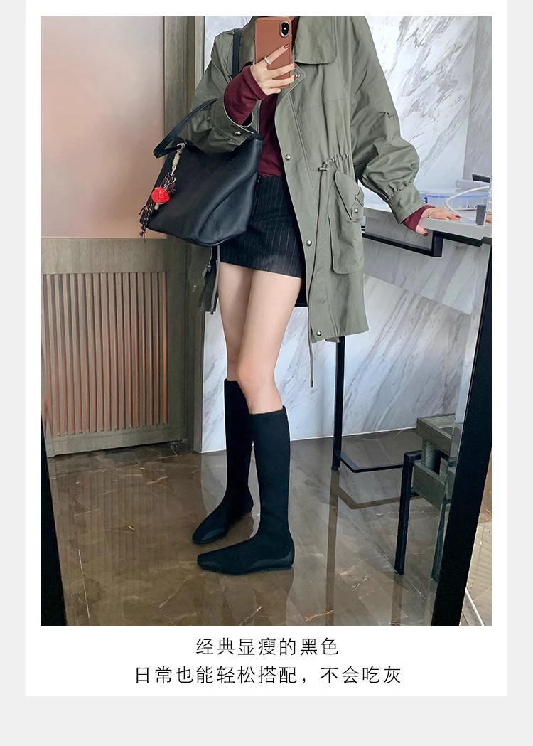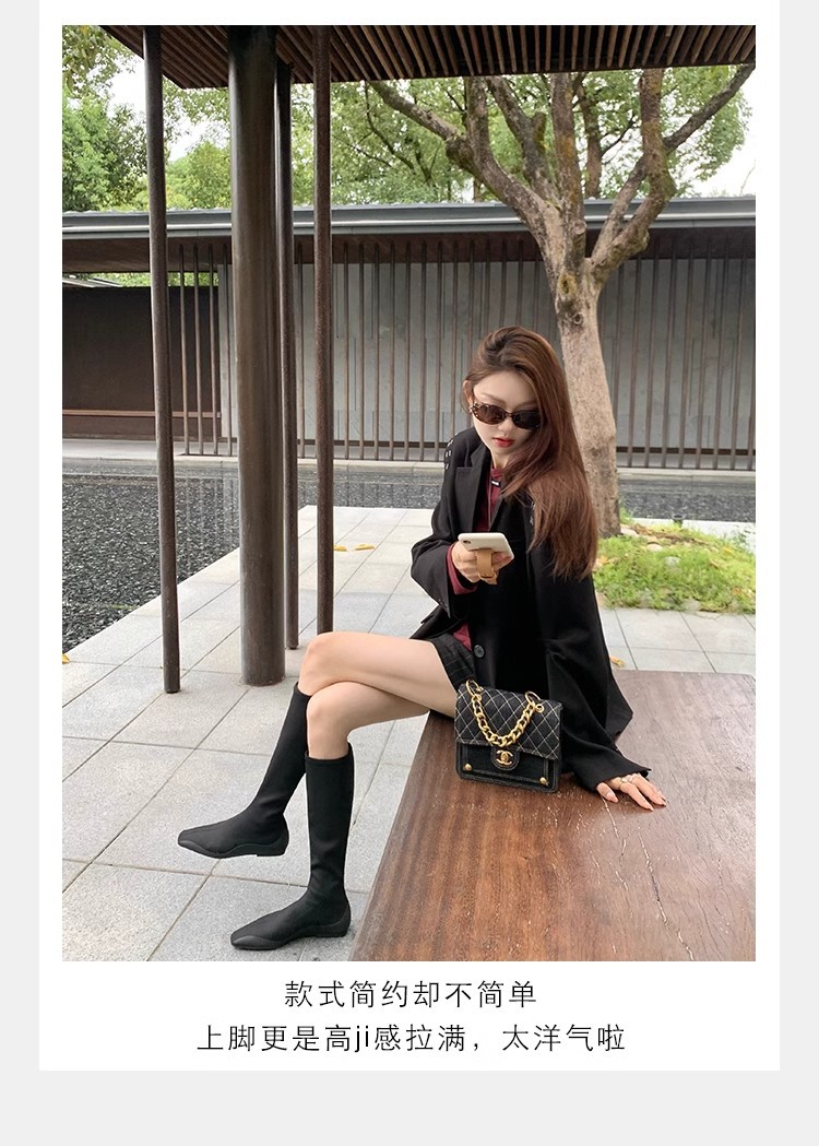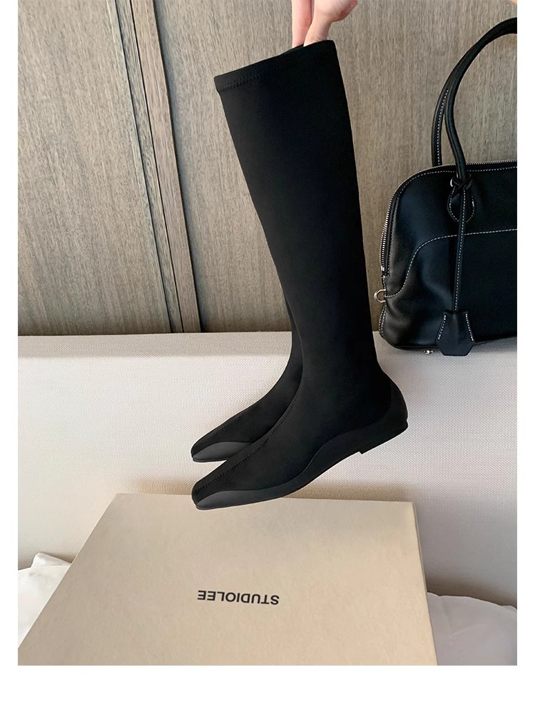 포도 엄마 studiolee 유행 만화 다리 ~ 기질 사각형 머리 평평한 바닥 벌거 벗은 부츠 다리 가방 튜브 얇은 부츠 여성
