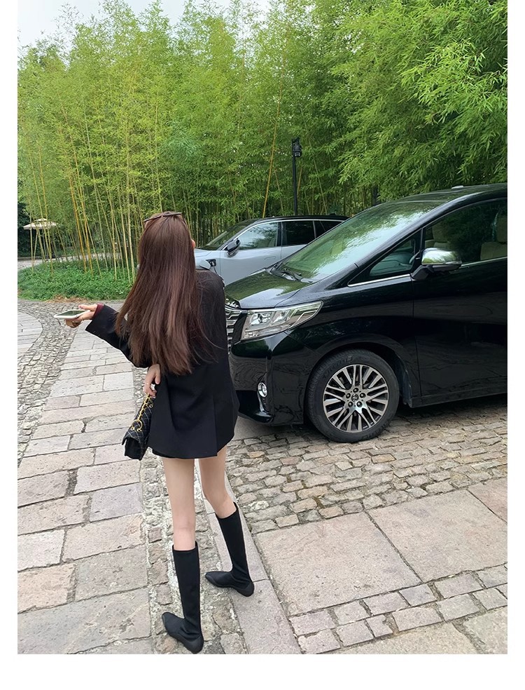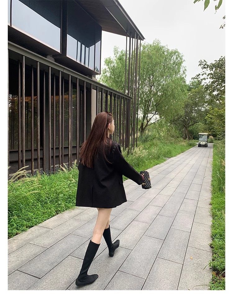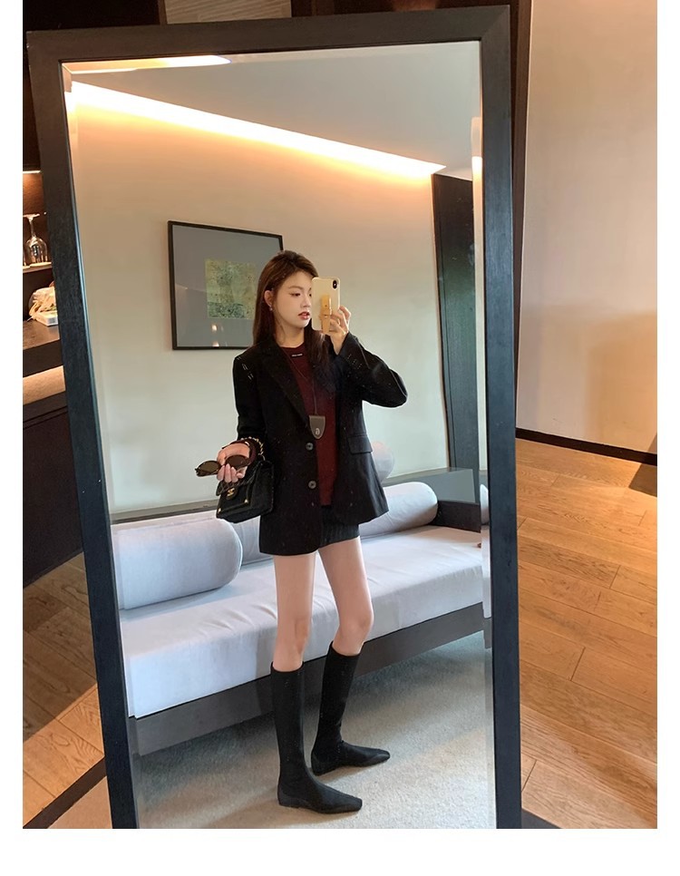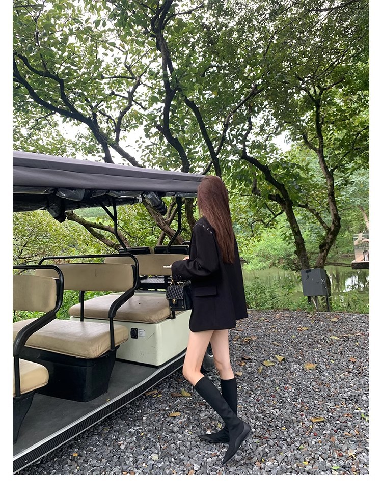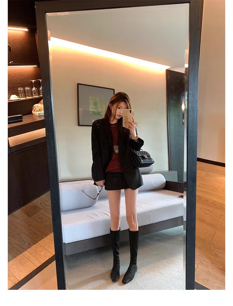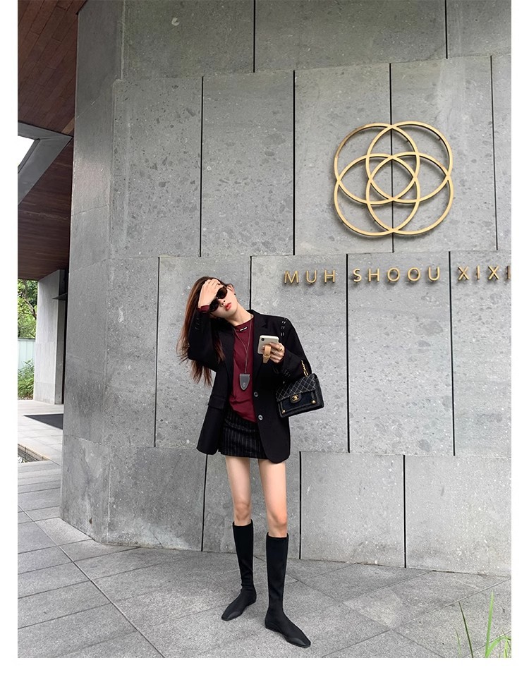 포도 엄마 studiolee 유행 만화 다리 ~ 기질 사각형 머리 평평한 바닥 벌거 벗은 부츠 다리 가방 튜브 얇은 부츠 여성