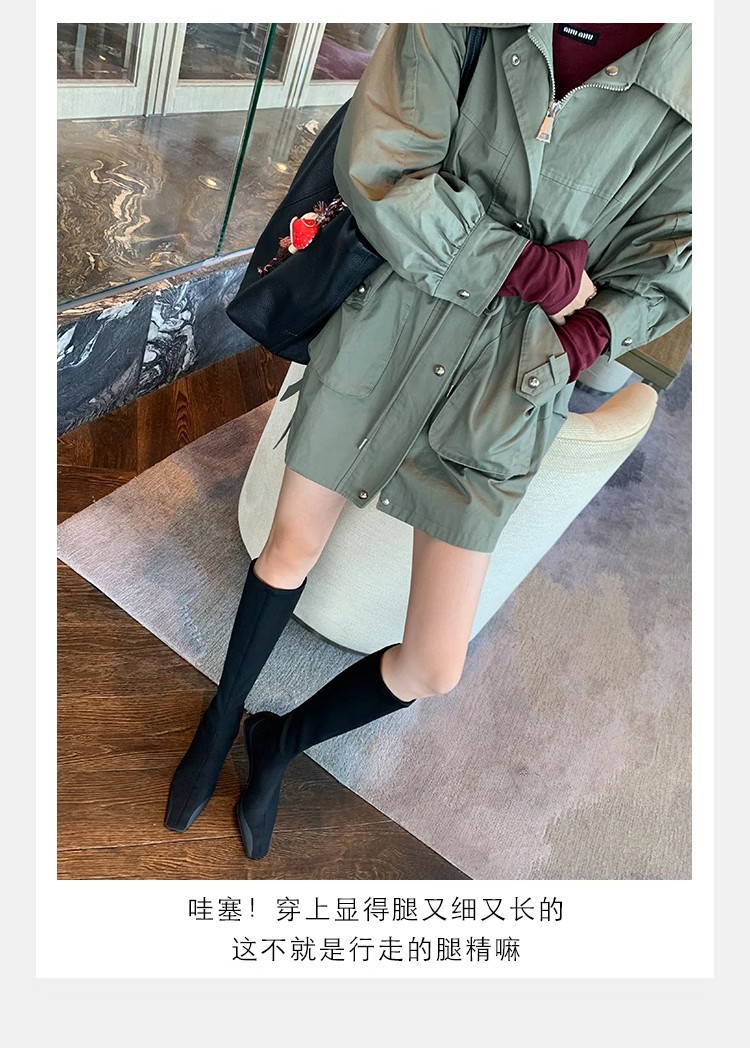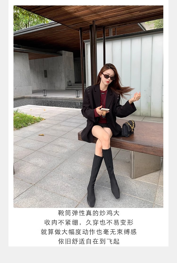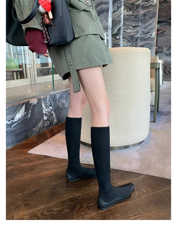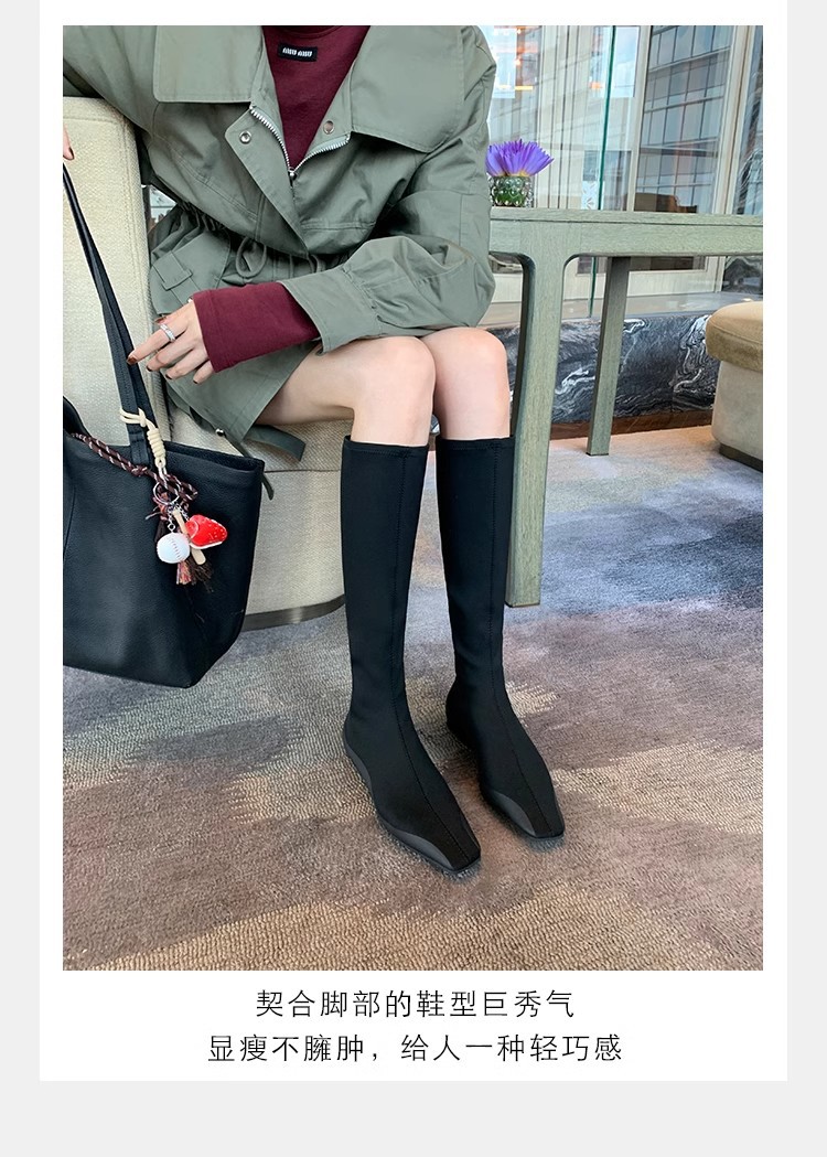 포도 엄마 studiolee 유행 만화 다리 ~ 기질 사각형 머리 평평한 바닥 벌거 벗은 부츠 다리 가방 튜브 얇은 부츠 여성스토어 가기