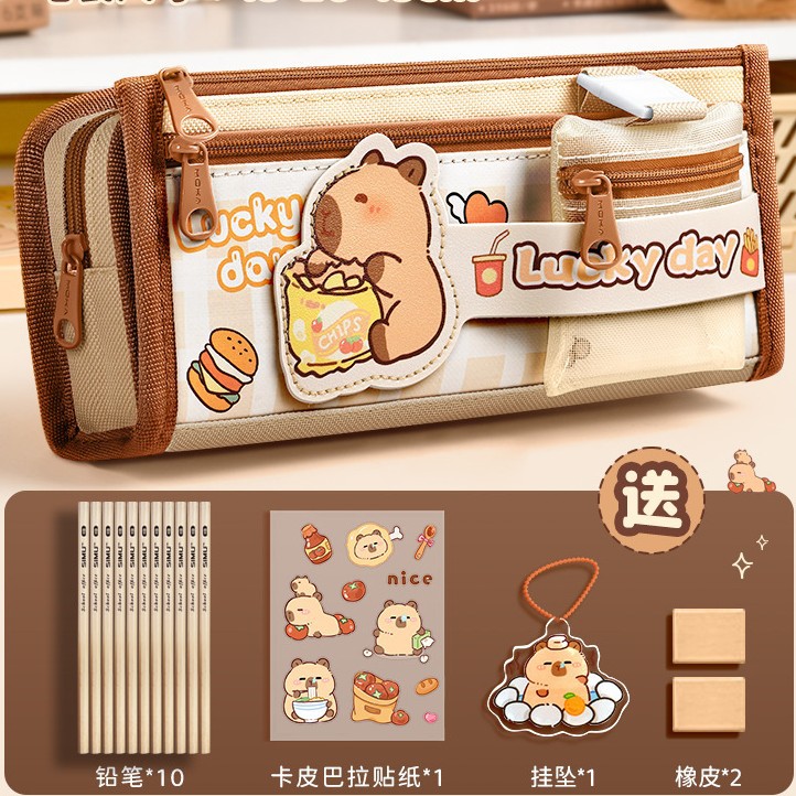 카피 바라 연필 케이스 2024 새로운 스타일 초등학교 소녀의 높은 색상 가치 대용량 문구 케이스 소녀의 중학생