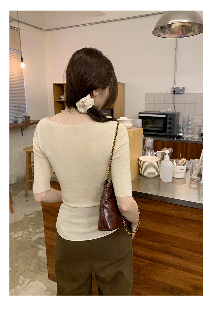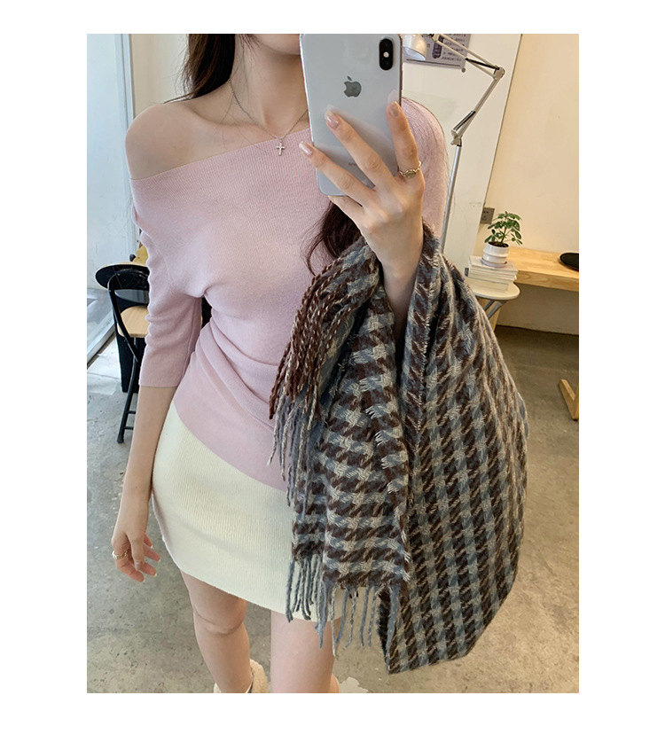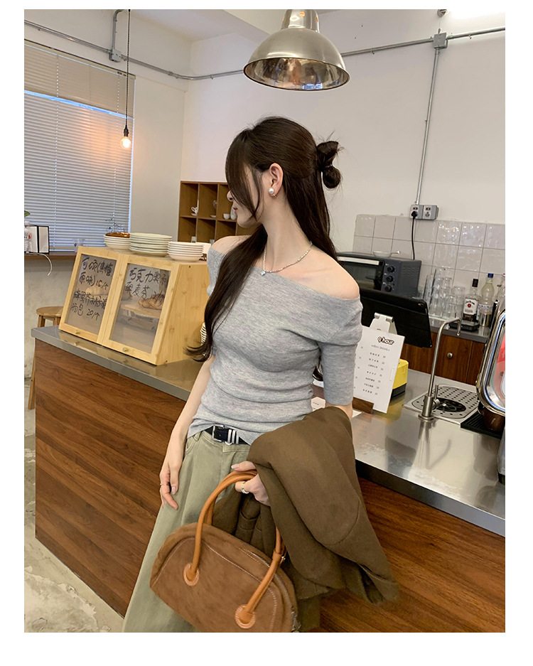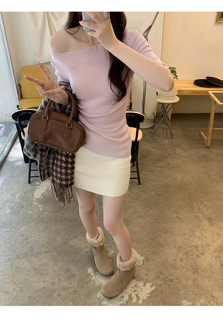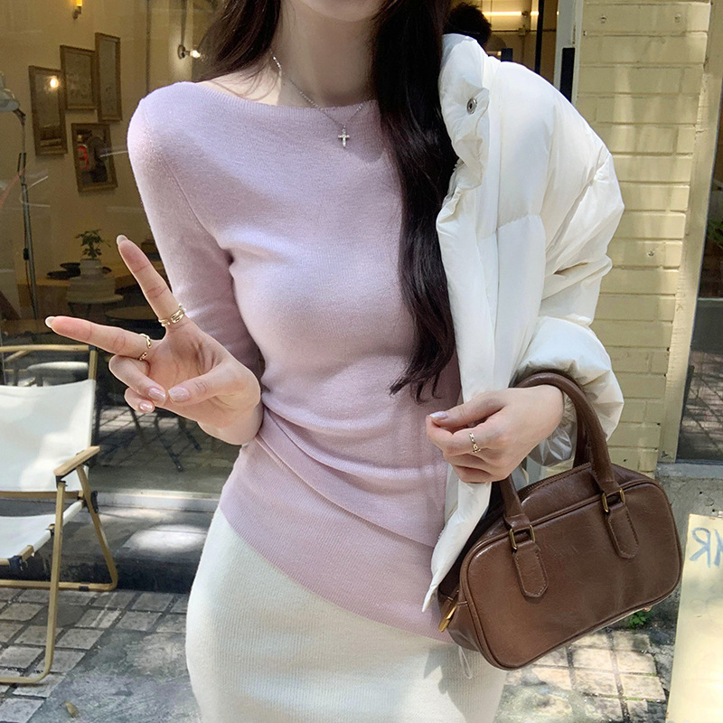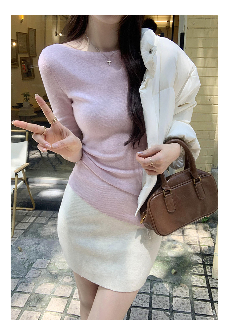 가을과 겨울 도파민 오프 숄더 실버 실크 하이 퀄리티 미드 슬리브 울 스웨터 여성의 가을 새로운 슬림 핏 탑스토어 가기