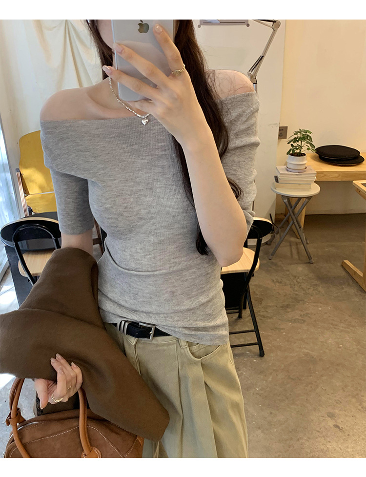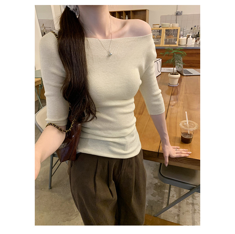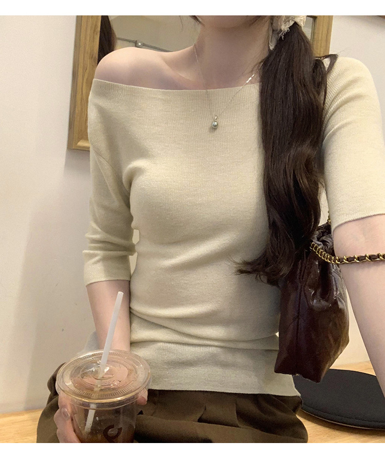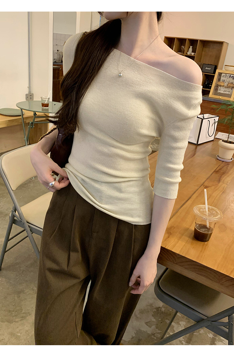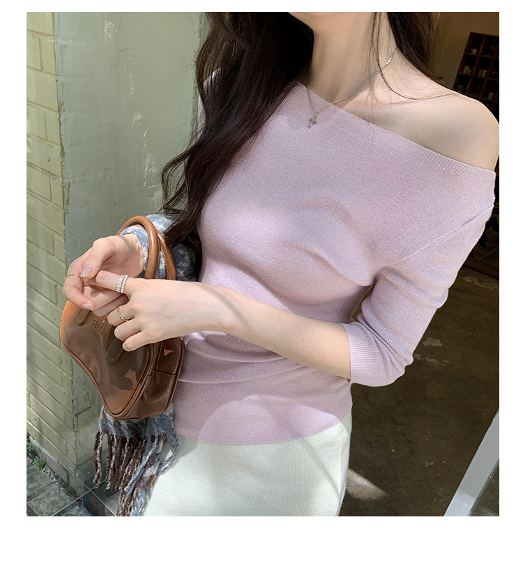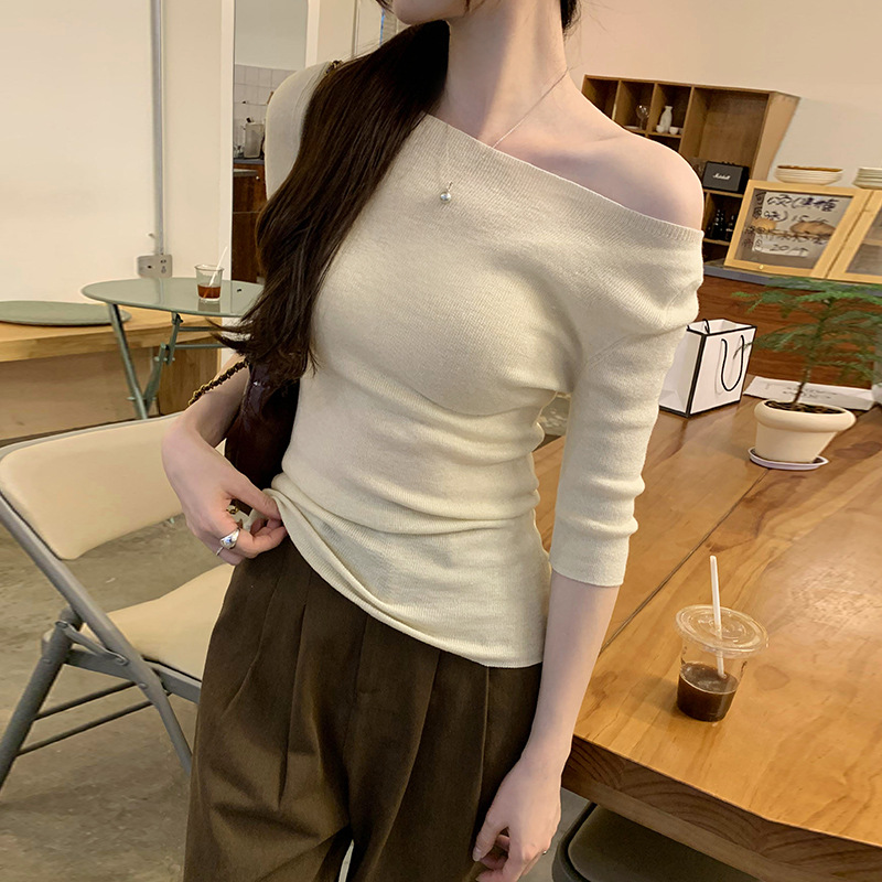 가을과 겨울 도파민 오프 숄더 실버 실크 하이 퀄리티 미드 슬리브 울 스웨터 여성의 가을 새로운 슬림 핏 탑