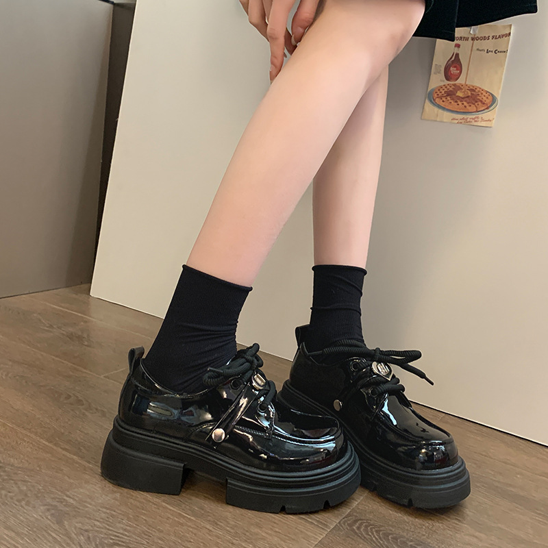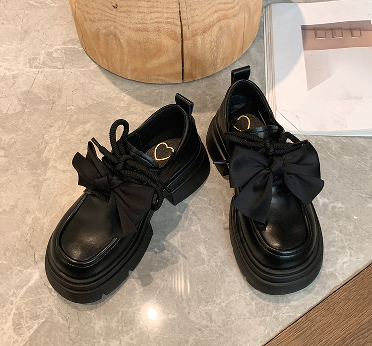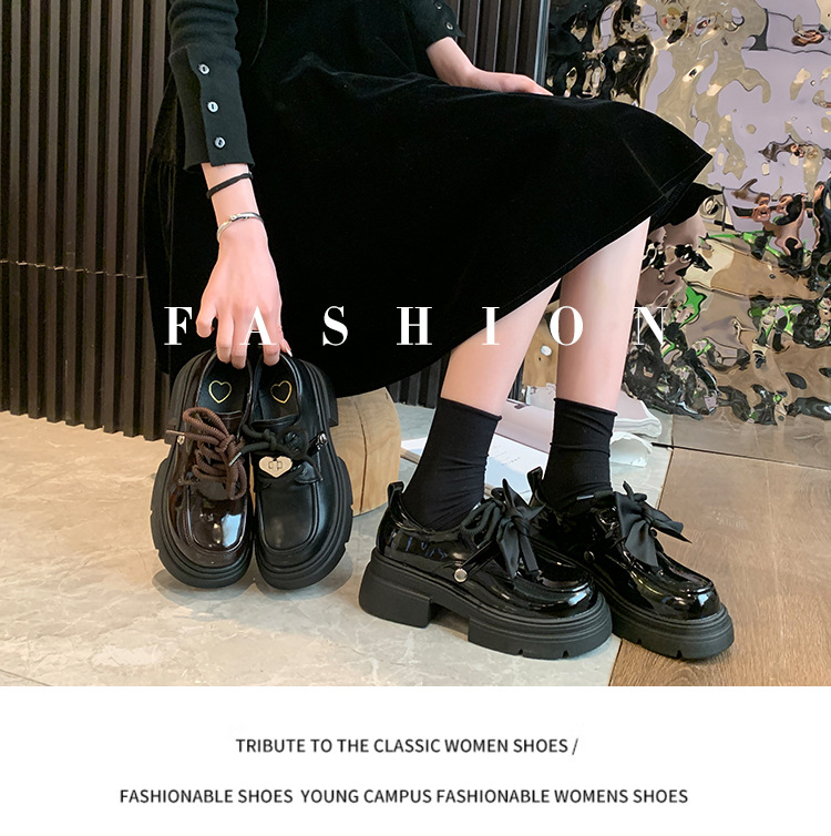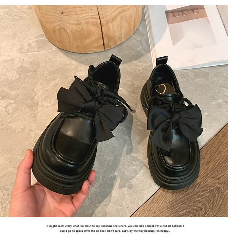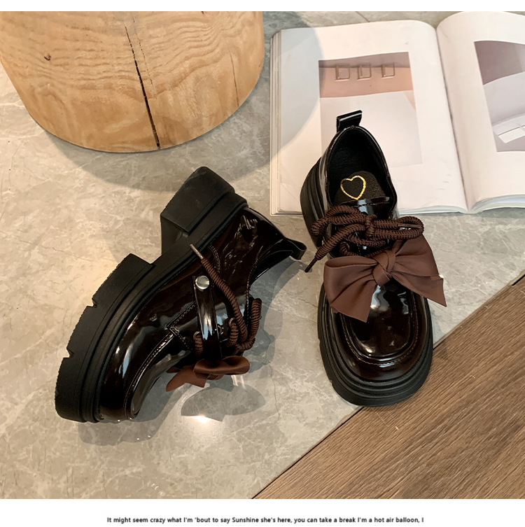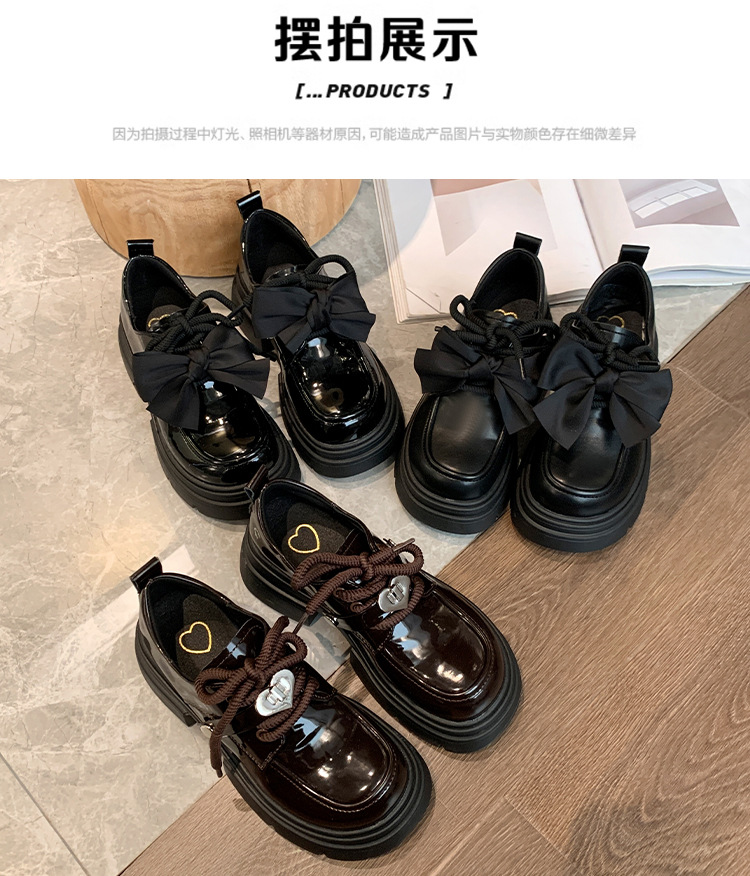 여성 작은 가죽 신발 2024 새로운 봄과 가을 보우 레트로 영국 스타일 두꺼운 단독 메리 제인 로퍼스토어 가기