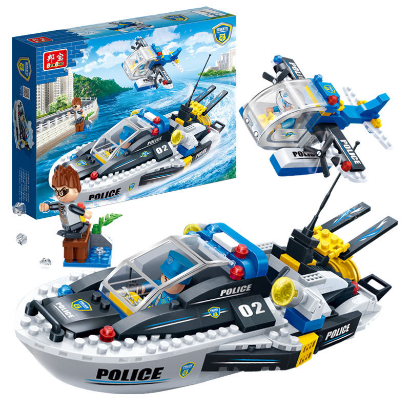 방바오 경찰 장면 퍼즐 빌딩 블록 작은 입자를 블록 빌딩 블록 어린이 생일 선물 경찰차 보트 수상 순찰스토어 가기