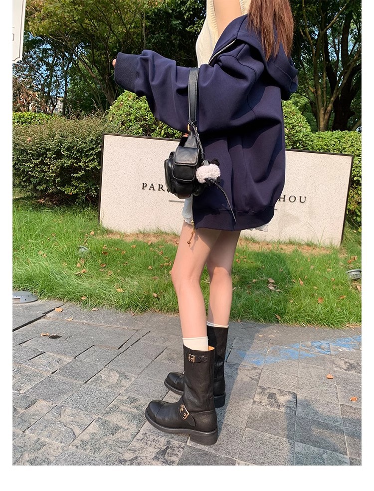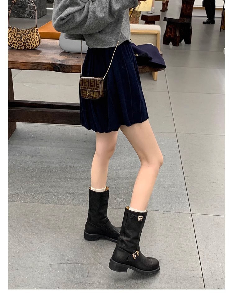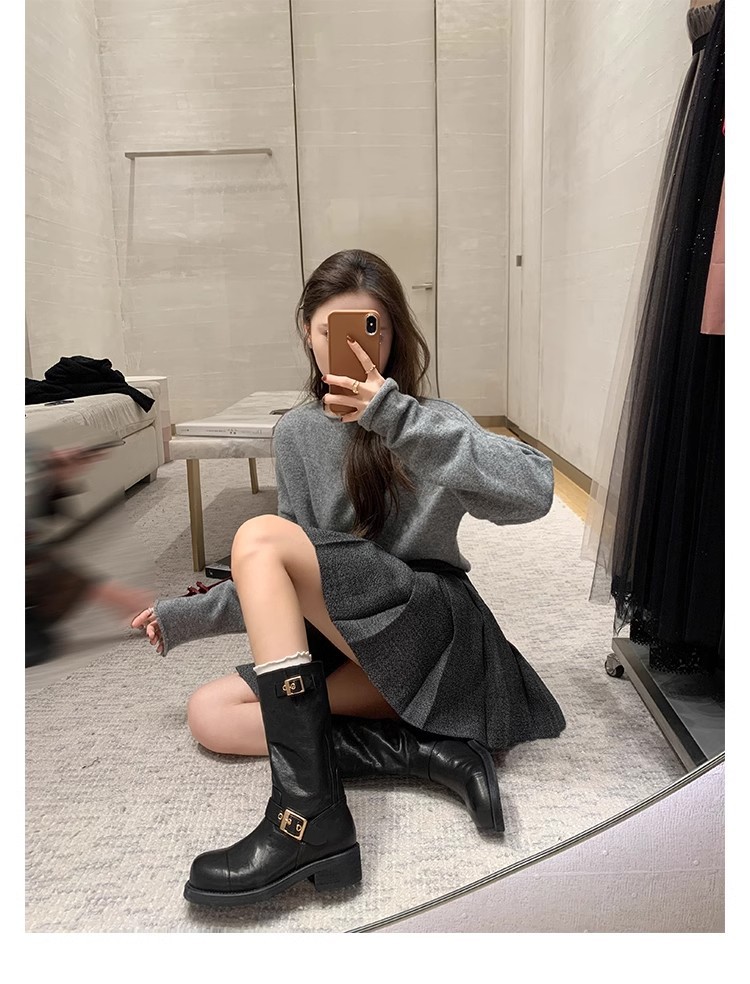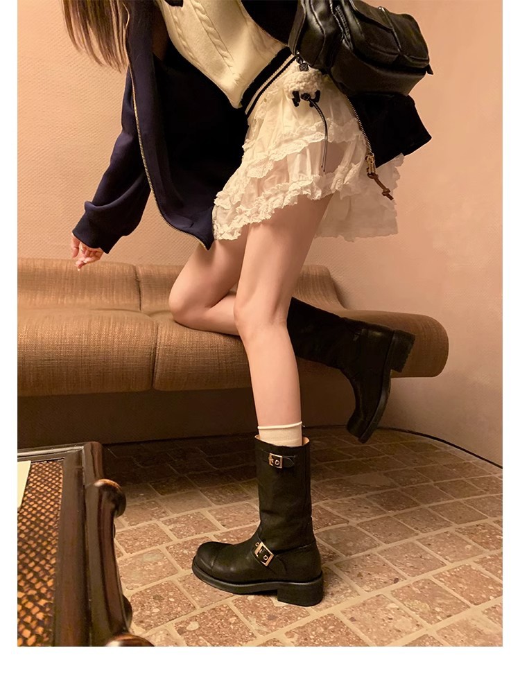 재고 빈티지 골동품 부드러운 가죽 Cowhide 두꺼운 힐 라운드 발가락 캐주얼 올 매치 미드 배럴 기사 부츠 여성의 가을과 겨울