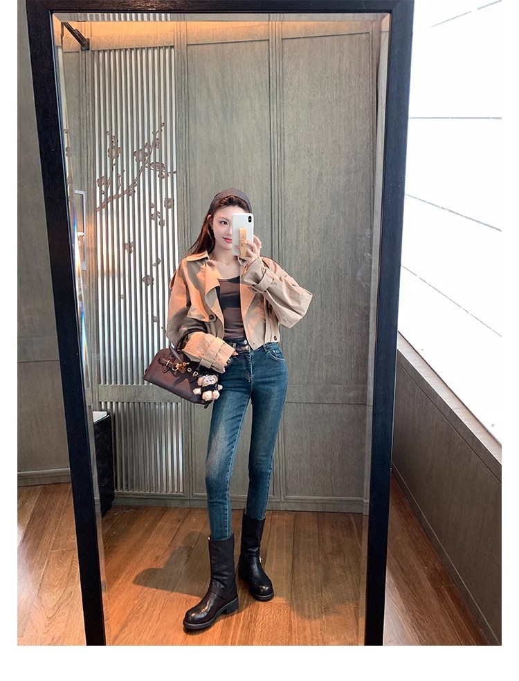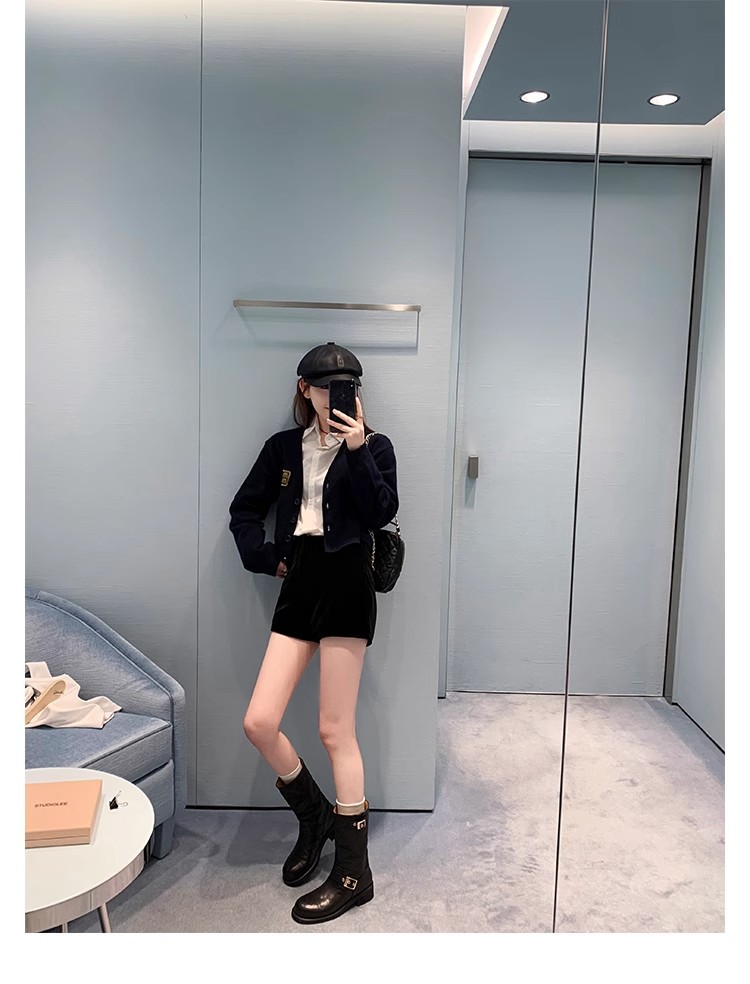 재고 빈티지 골동품 부드러운 가죽 Cowhide 두꺼운 힐 라운드 발가락 캐주얼 올 매치 미드 배럴 기사 부츠 여성의 가을과 겨울스토어 가기