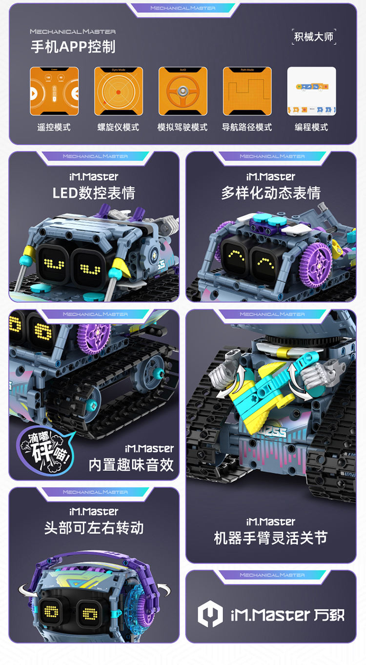 • Wanzhi 8060 (디지털 표정 소리와 빛) 3 가변 와력 로봇 [핸들 리모콘 + 휴대폰 프로그래밍]