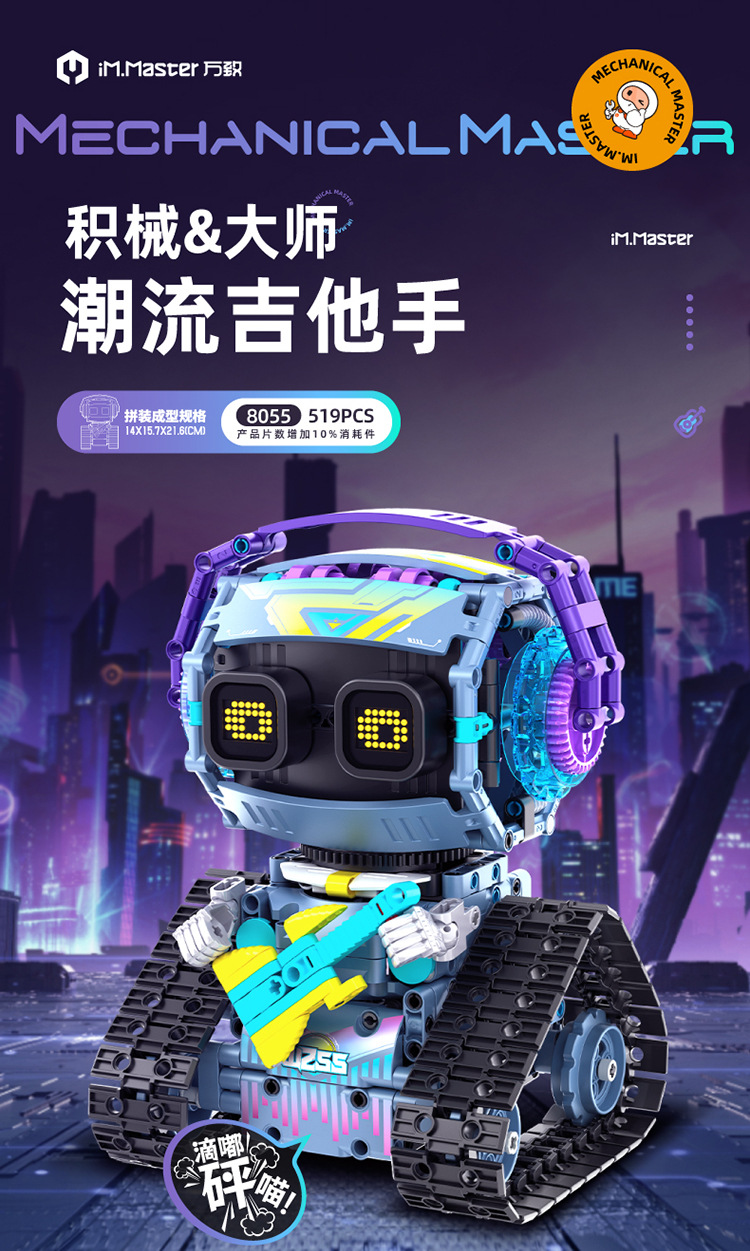 국경 간 Wan Zhi 8055 빌딩 블록 디지털 디스플레이 프로그래밍 로봇 유행 기타 연주자 원격 제어 전기 조립 어린이 소년스토어 가기