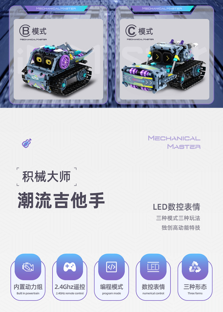 국경 간 Wan Zhi 8055 빌딩 블록 디지털 디스플레이 프로그래밍 로봇 유행 기타 연주자 원격 제어 전기 조립 어린이 소년