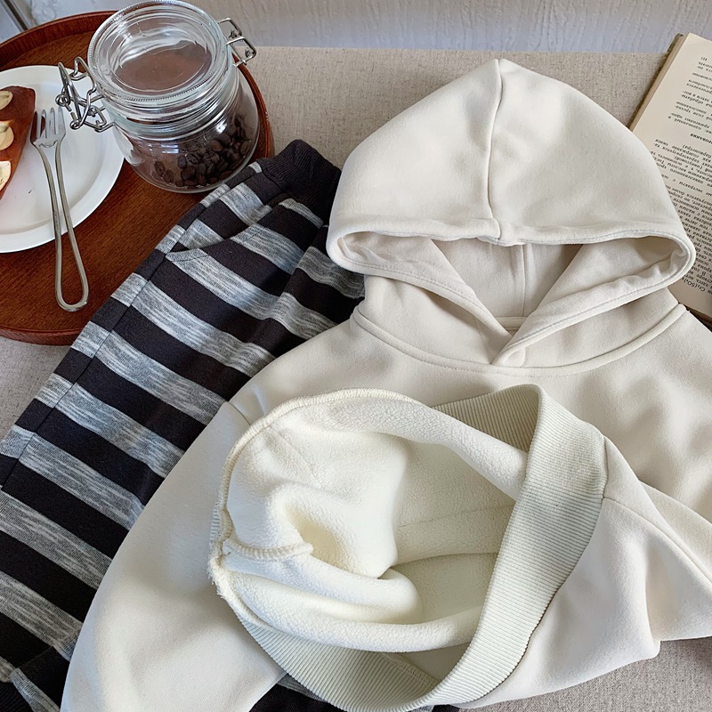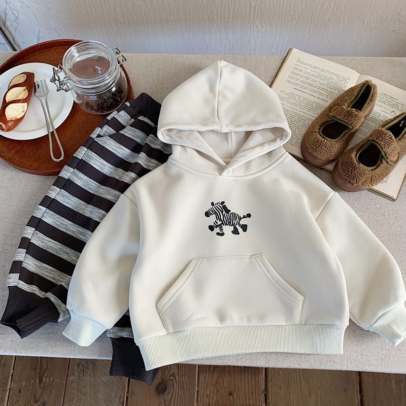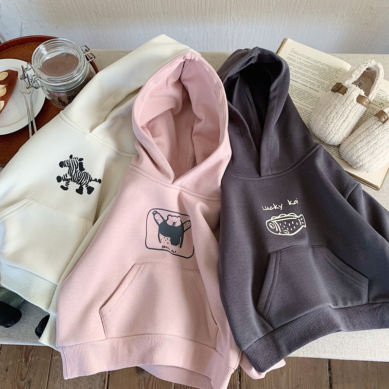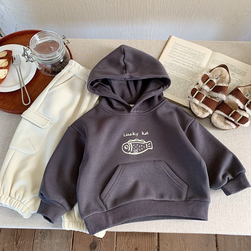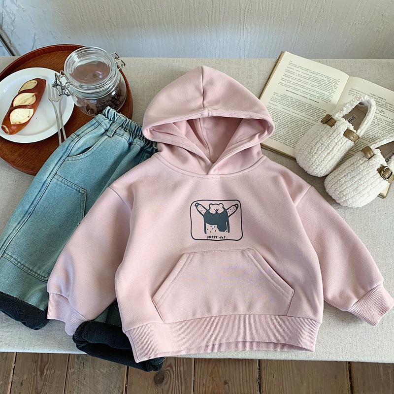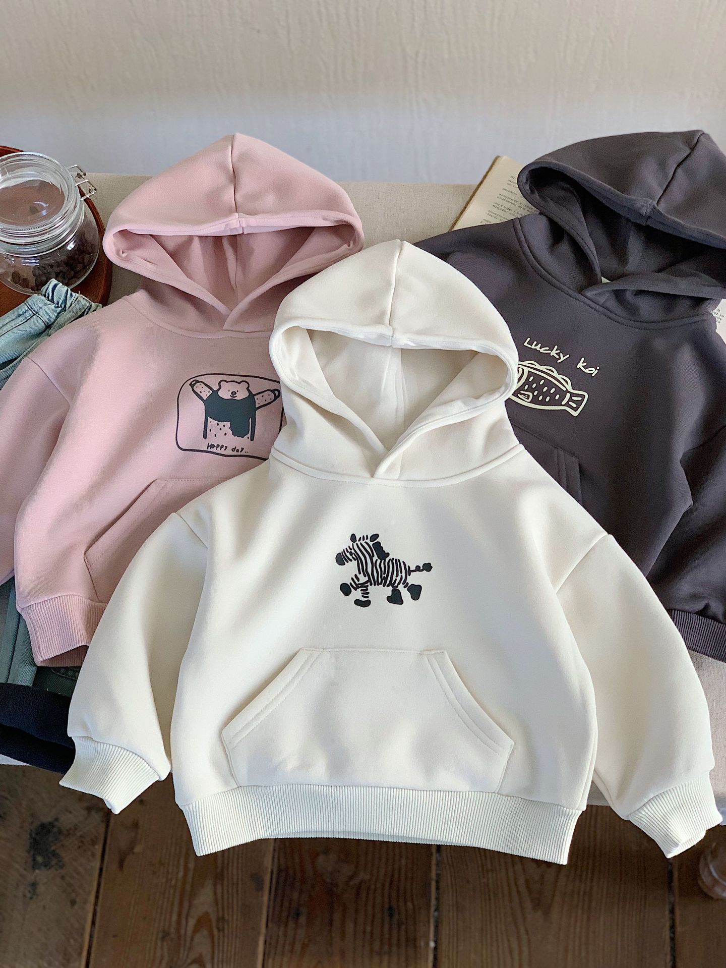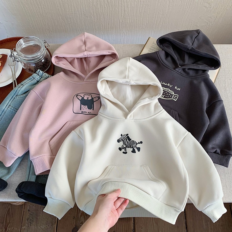 소년 기모 스웨트 셔츠 2024 겨울 새로운 어린이 원피스 캐시미어 두꺼운 탑 풀오버 소녀 만화스토어 가기