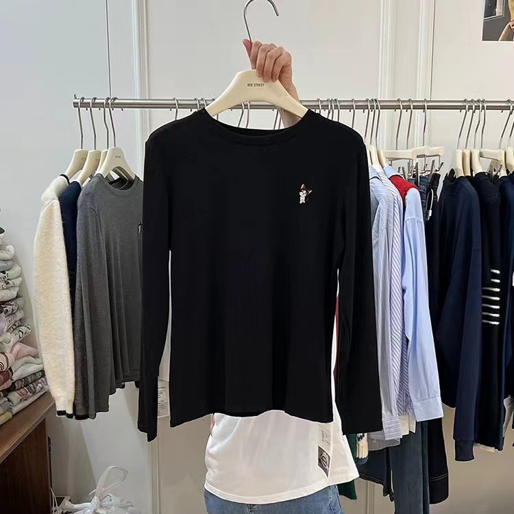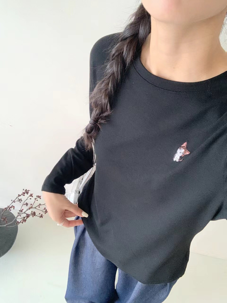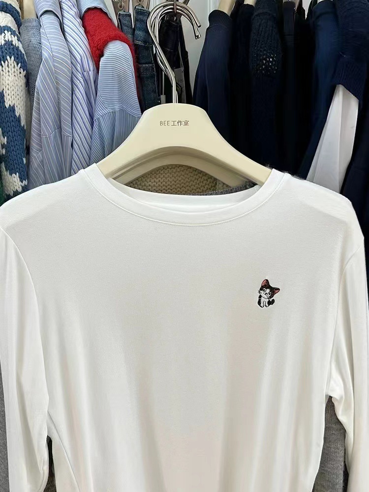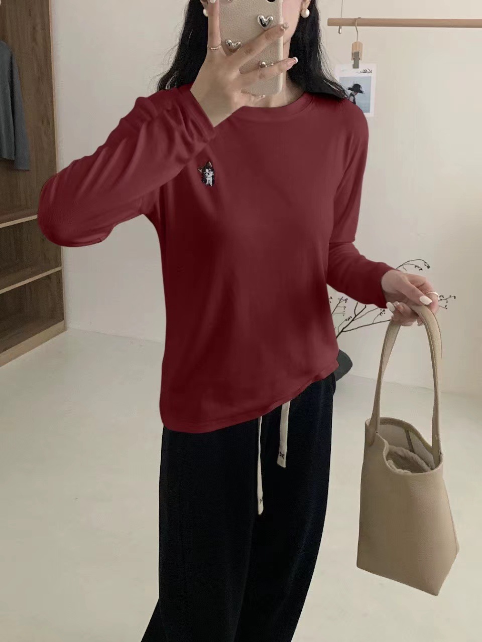 베이스 셔츠 여성용 둥근 목 가을 새끼 고양이 자수 하이 퀄리티 수용성 긴 소매 디자인 감각 앙고라 레드 탑 도매스토어 가기