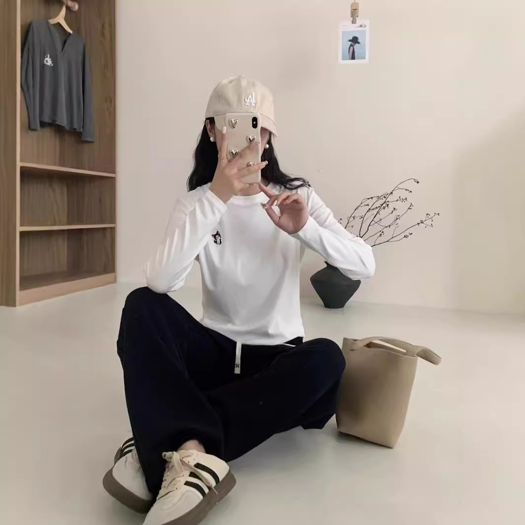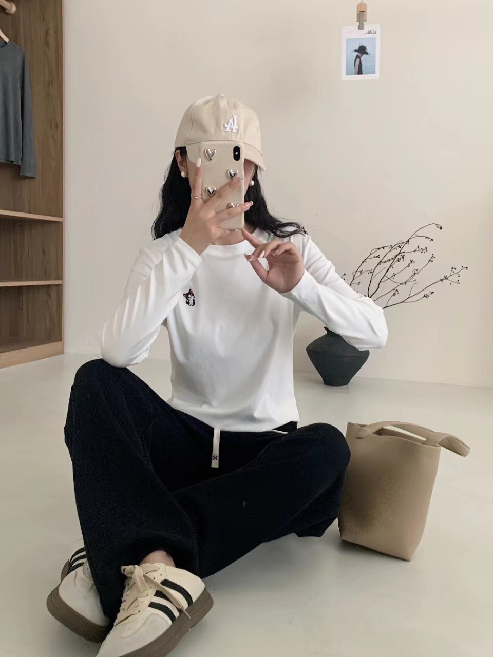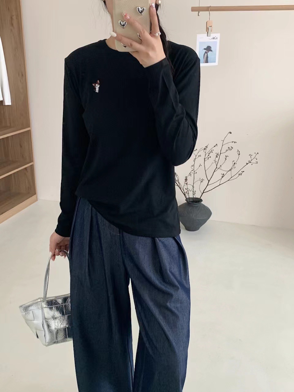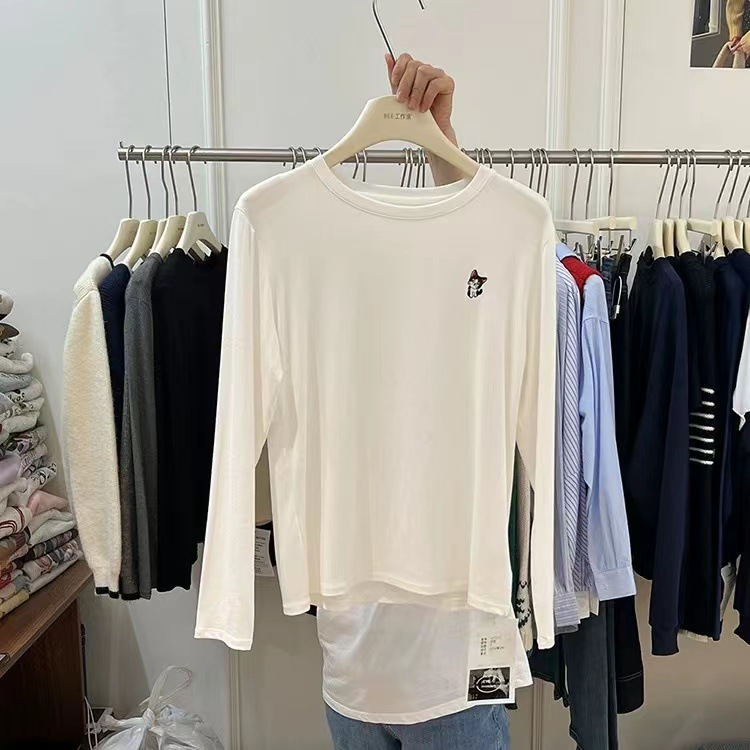 베이스 셔츠 여성용 둥근 목 가을 새끼 고양이 자수 하이 퀄리티 수용성 긴 소매 디자인 감각 앙고라 레드 탑 도매스토어 가기
