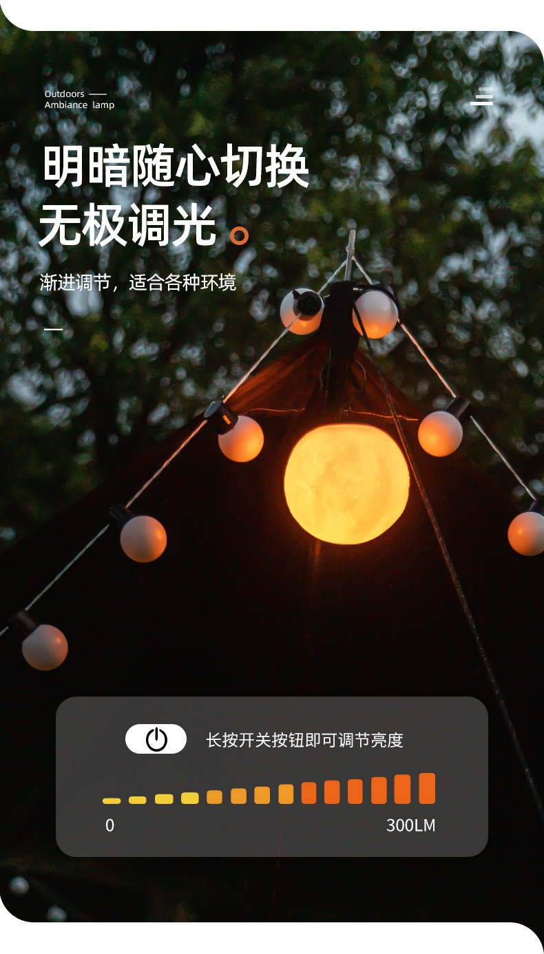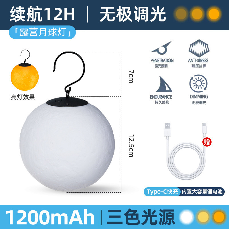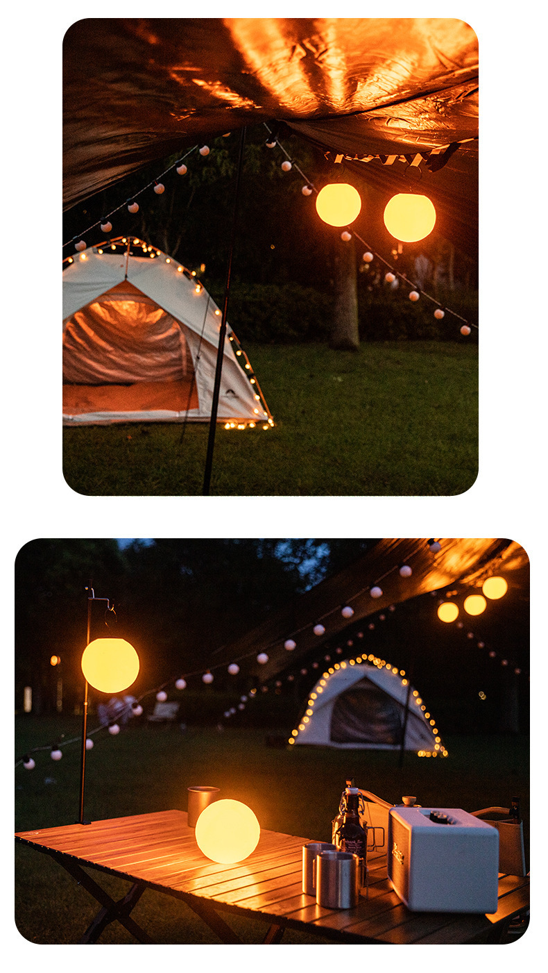야외 텐트 캠핑 라이트 LED 방수 달 빛 충전식 캠핑 매달려 빛 휴대용 분위기 텐트 라이트 도매스토어 가기