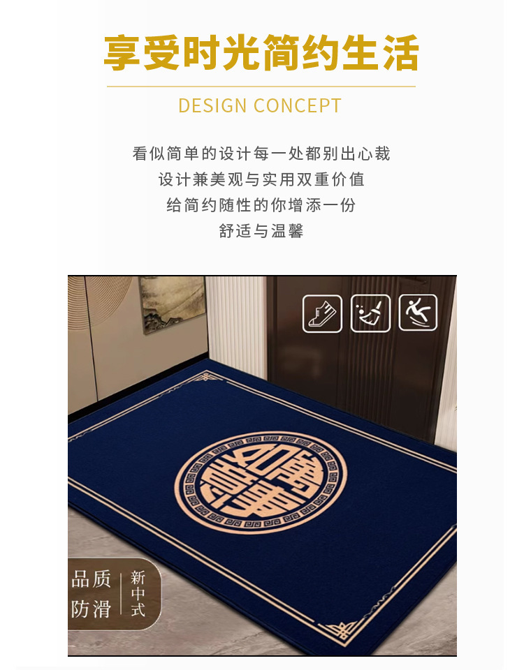 새로운 중국 스타일 입구 매트 입구 문 미끄럼 방지 발 매트 가정용 내마모성 간편한 관리 루프 매트