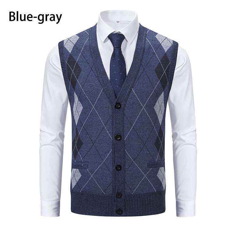 민소매 허리 코트 니트 조끼 남성 가을 및 겨울 비즈니스 캐주얼 패션 슬림 핏 Rhombic V-neck 싱글 브레스트 스웨터 조끼스토어 가기
