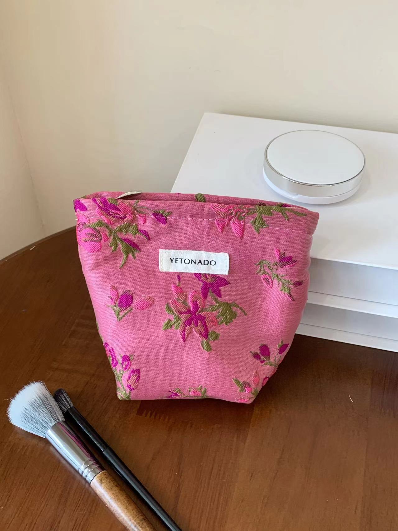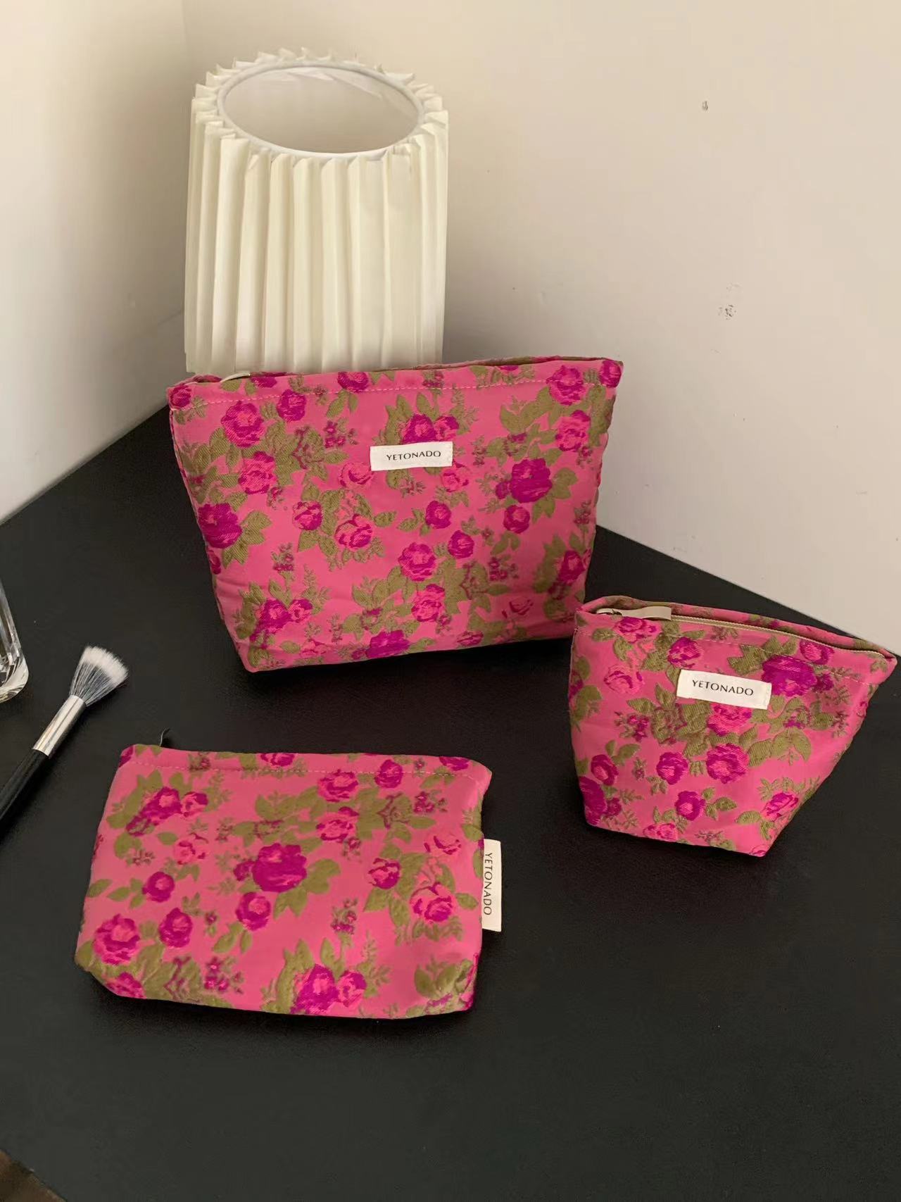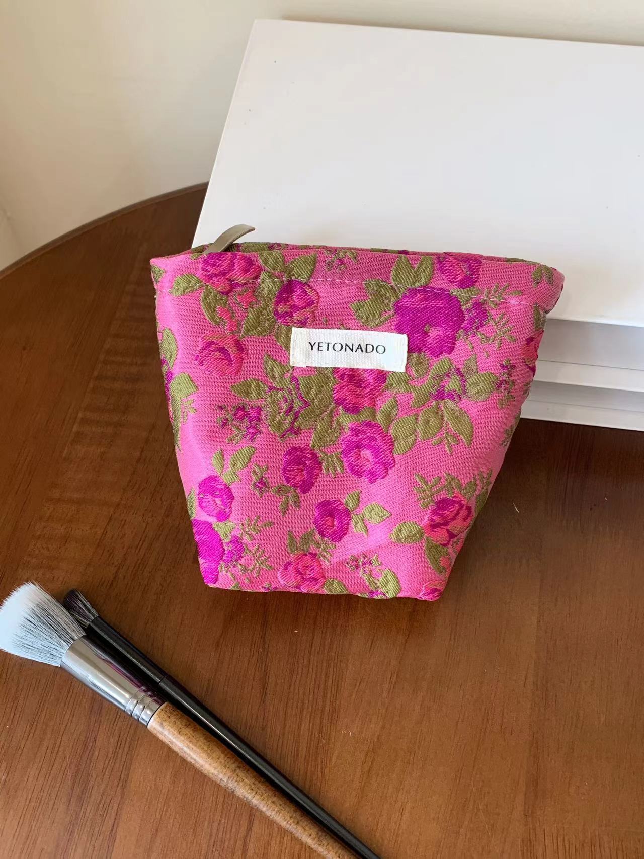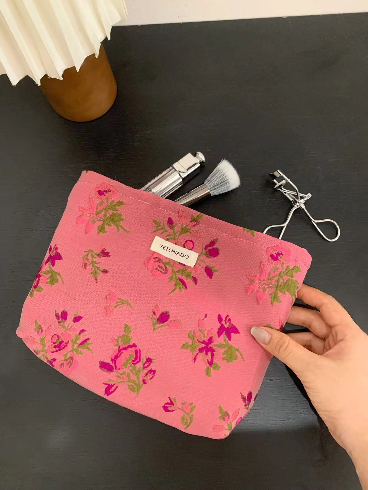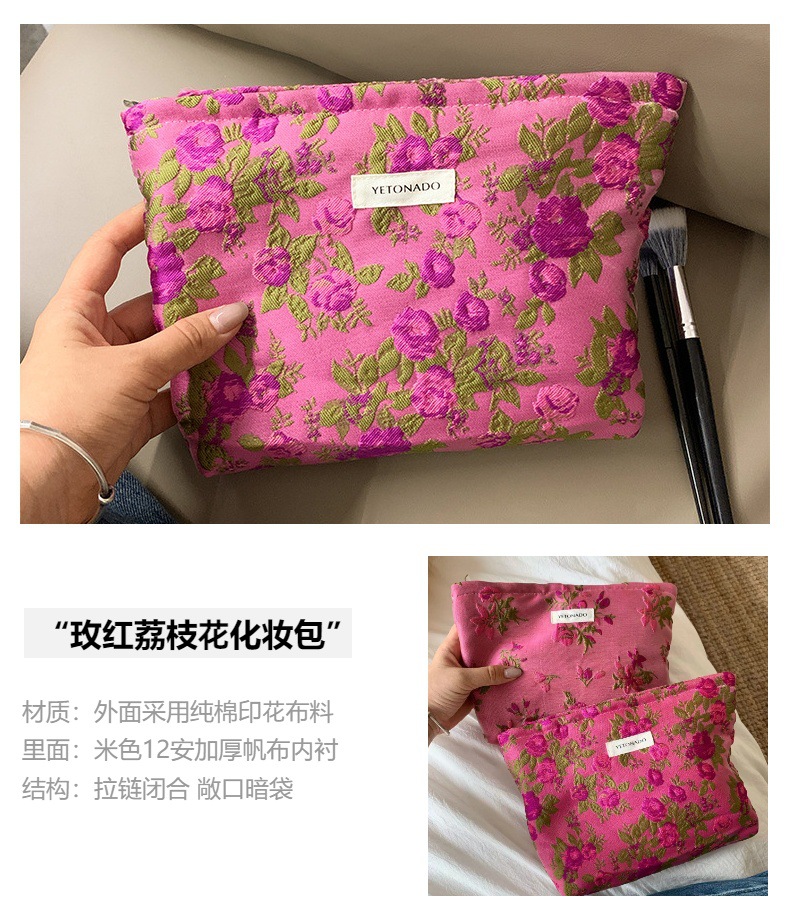 꽃 화장품 가방 휴대용 스킨 케어 보관 가방 캔버스 작은 가방 내부 가방 여행 세탁 가방 지갑