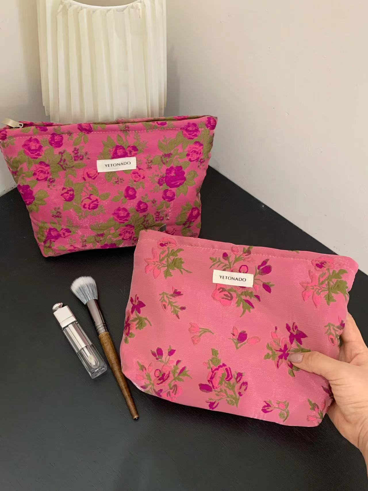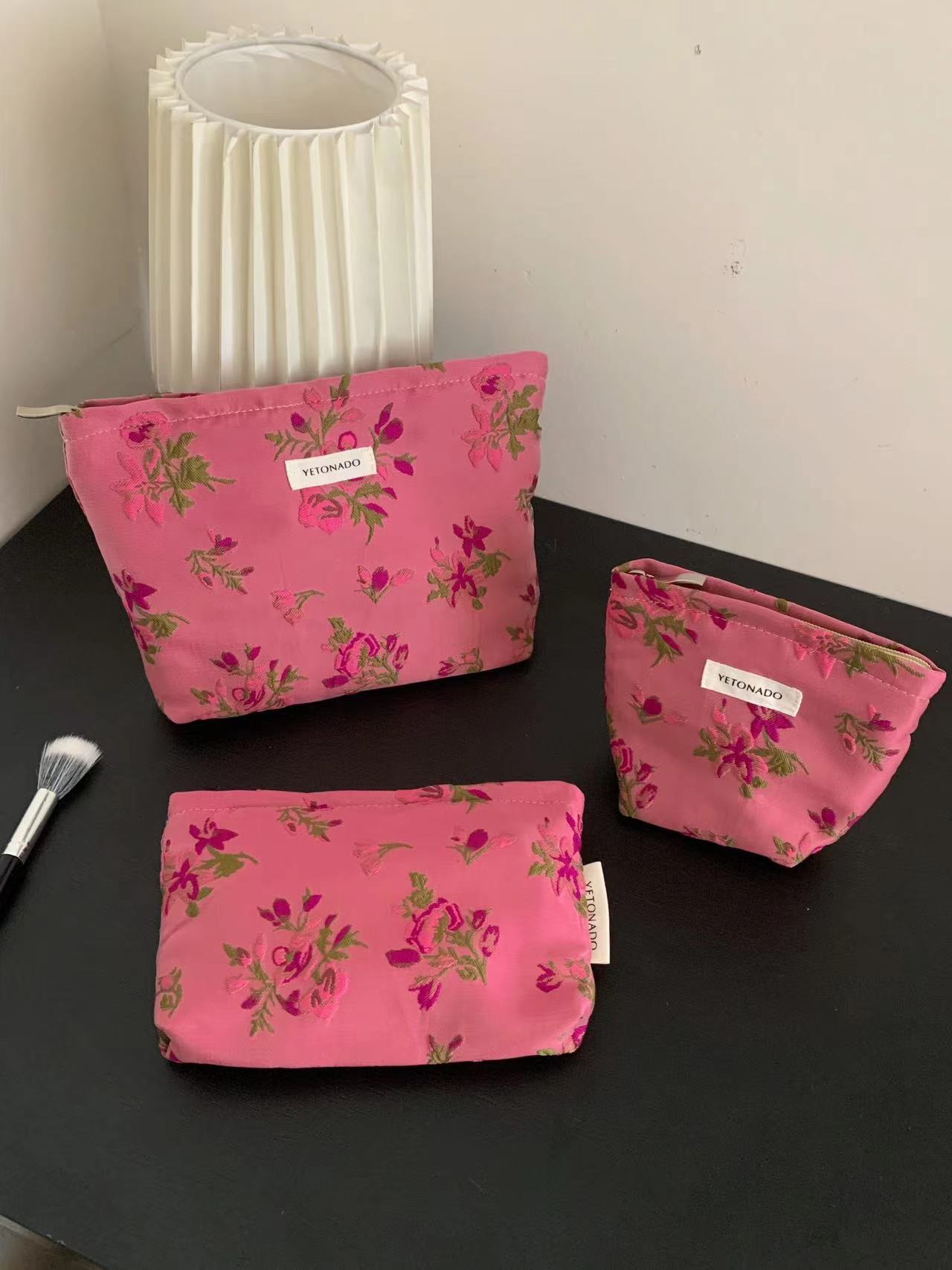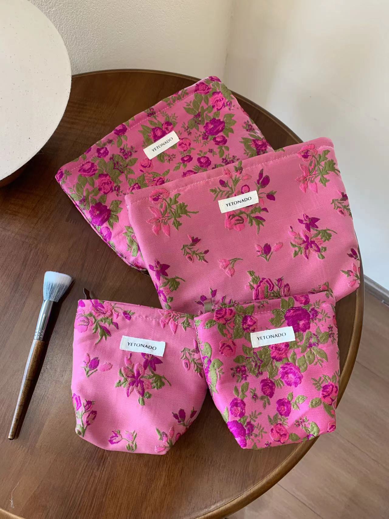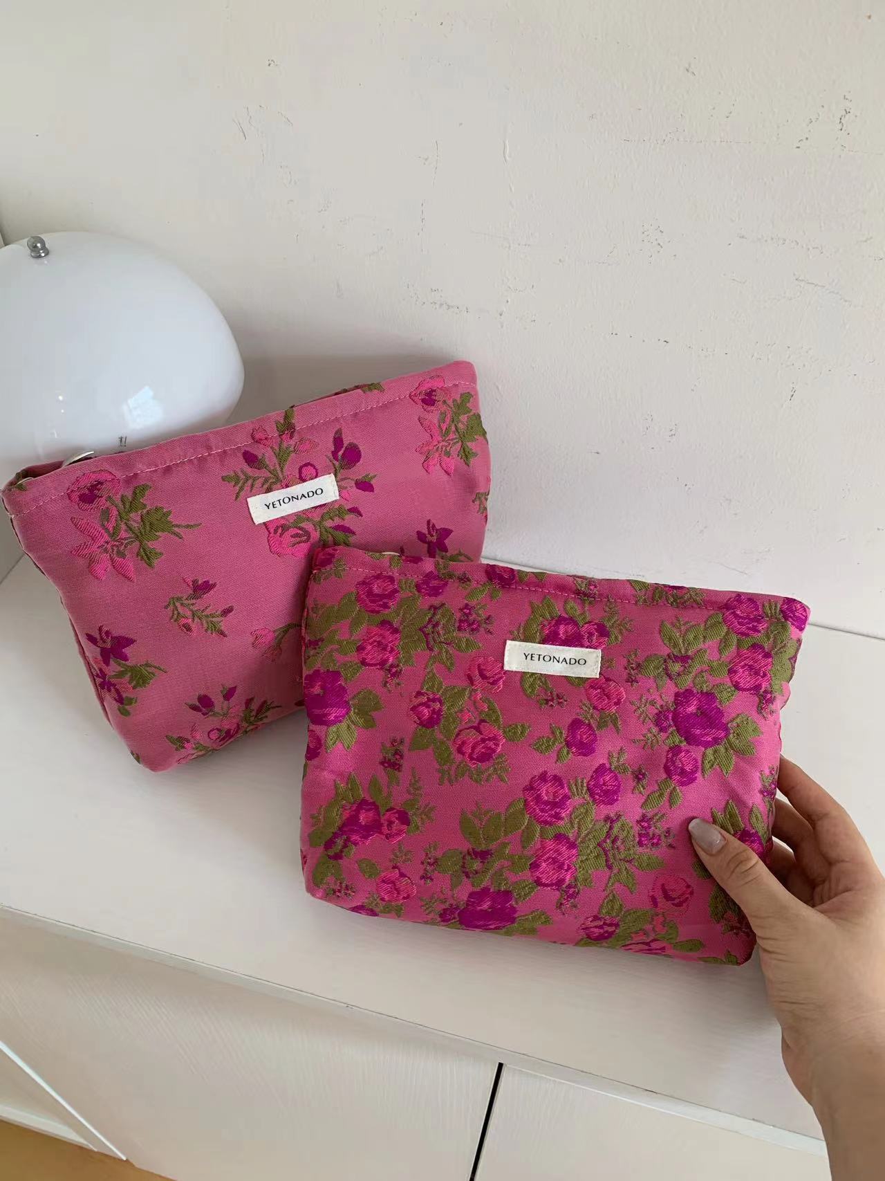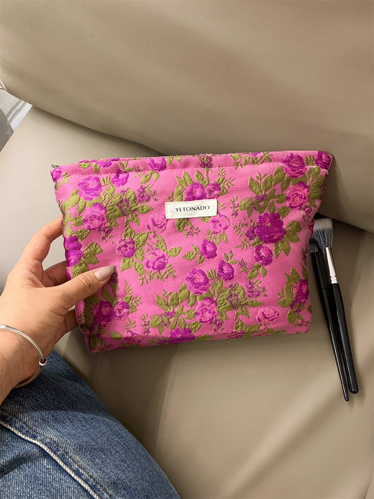 꽃 화장품 가방 휴대용 스킨 케어 보관 가방 캔버스 작은 가방 내부 가방 여행 세탁 가방 지갑