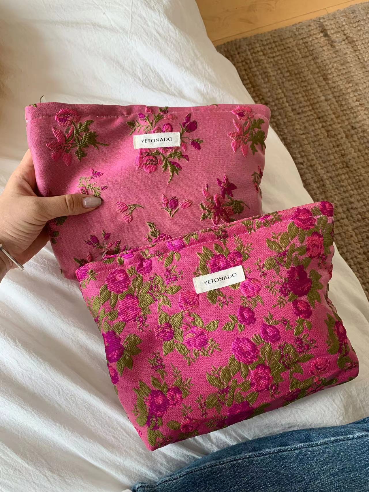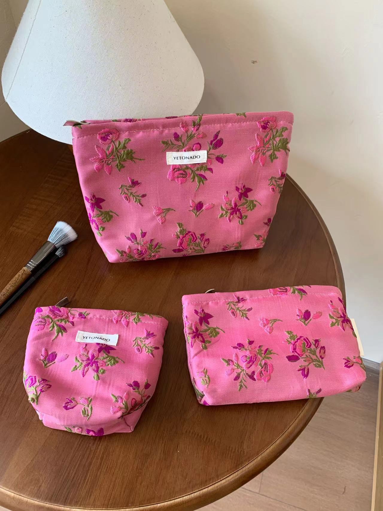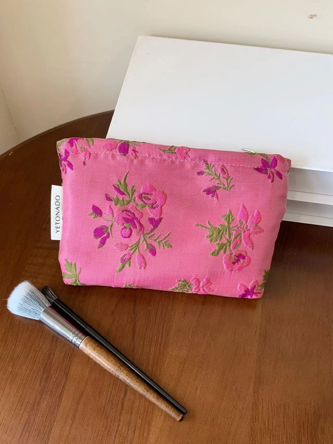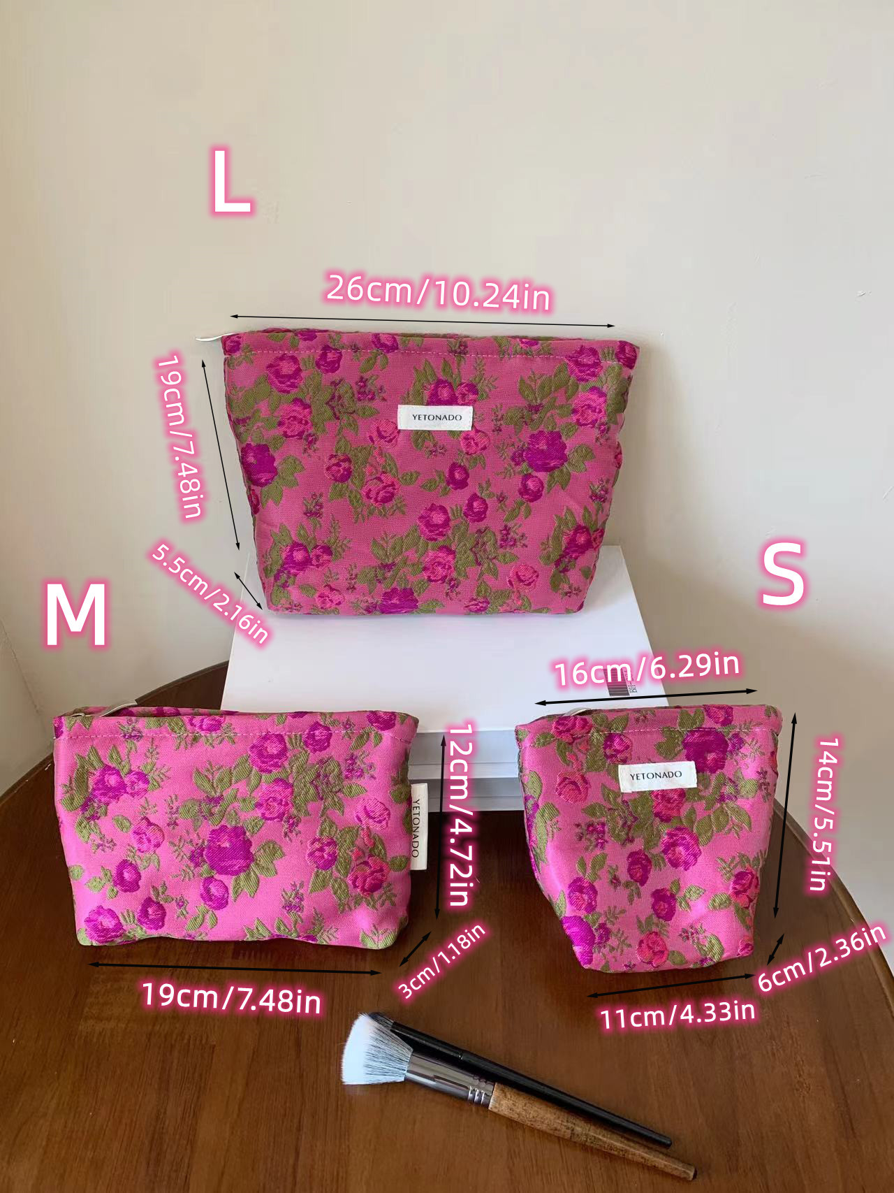 꽃 화장품 가방 휴대용 스킨 케어 보관 가방 캔버스 작은 가방 내부 가방 여행 세탁 가방 지갑