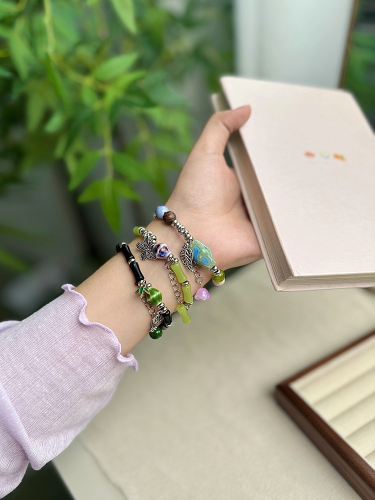 도매 Jingdezhen 세라믹 팔찌 Guofeng 대나무 커플 사랑 워터 드롭 벨 Guofeng 민족 구슬 보석