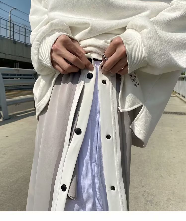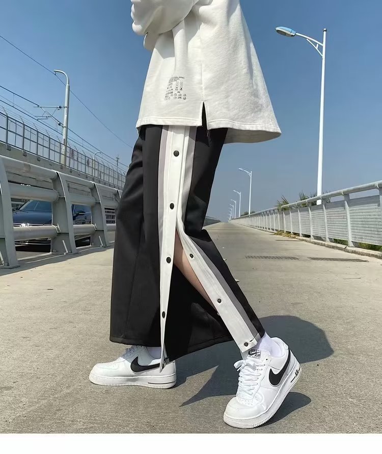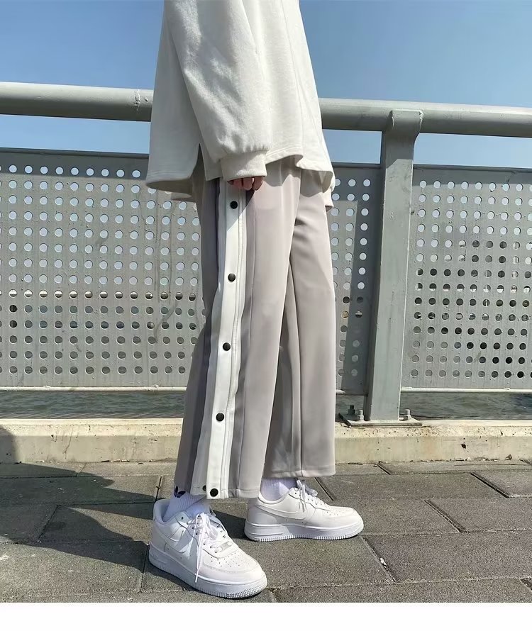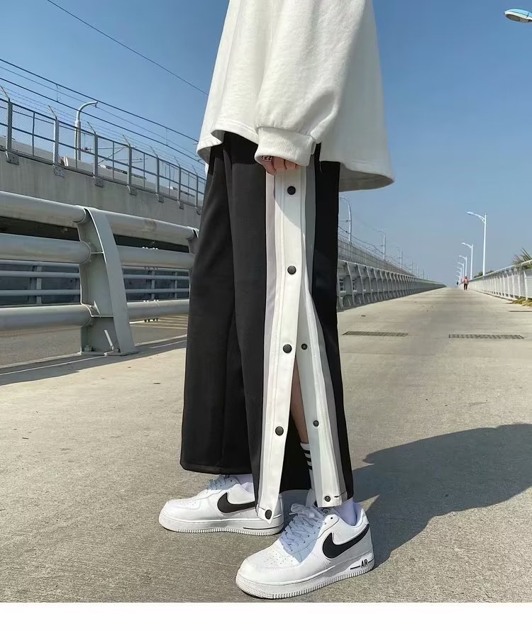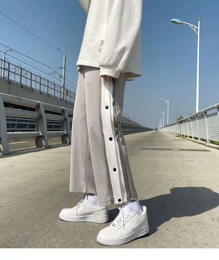 스트레이트 브레스트 바지 남자 가을과 겨울 사이드 행 풀 오픈 버클 초 오프 농구 스포츠 팬츠 겨울 기모 넓은 다리 캐주얼 바지