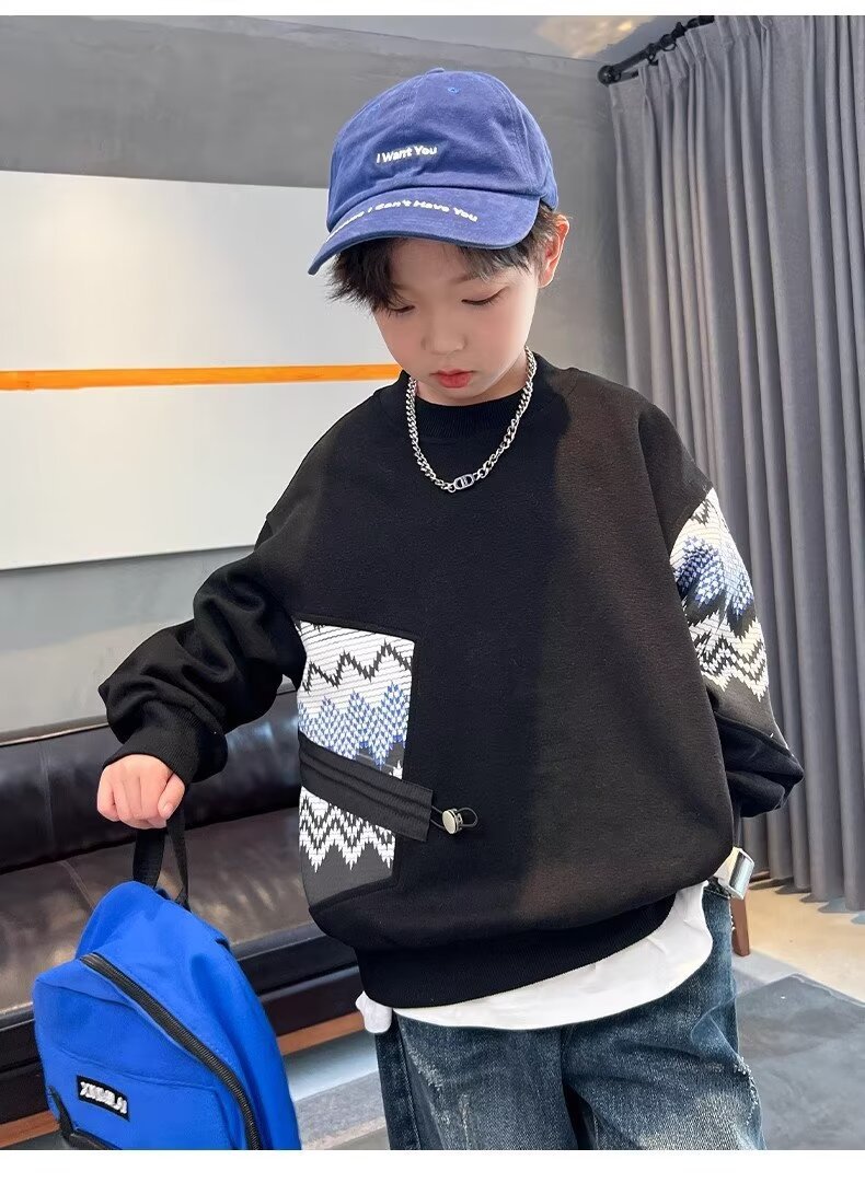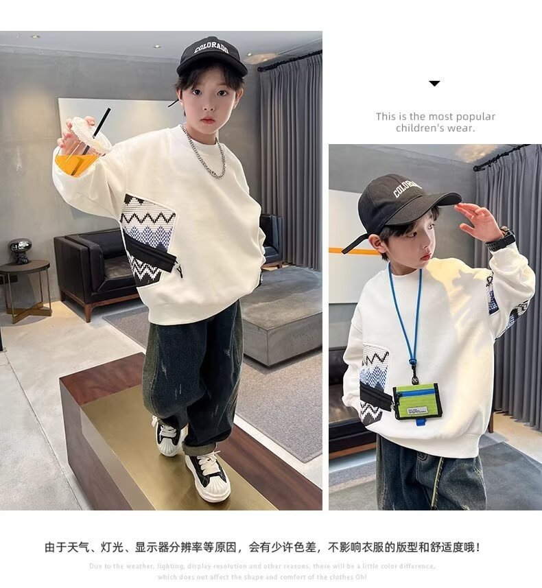 가을 소년의 트렌디 한 브랜드 스웨터 2024 새로운 어린이 봄과 가을 최고 큰 어린이 가을 트렌디 티셔츠스토어 가기