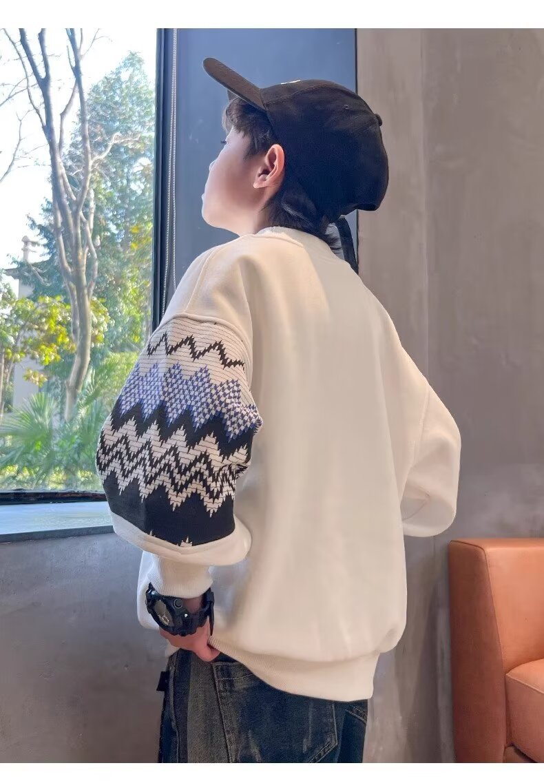 가을 소년의 트렌디 한 브랜드 스웨터 2024 새로운 어린이 봄과 가을 최고 큰 어린이 가을 트렌디 티셔츠