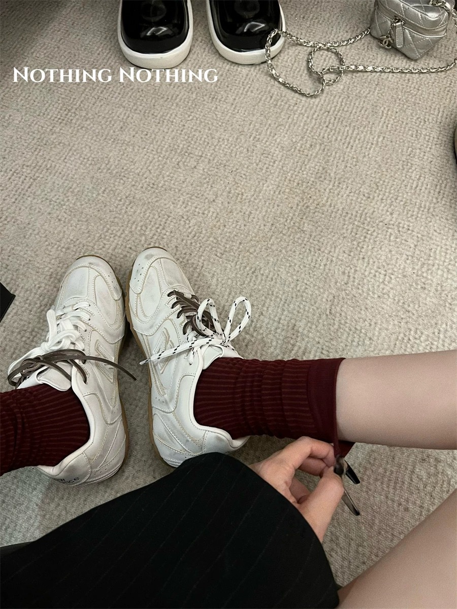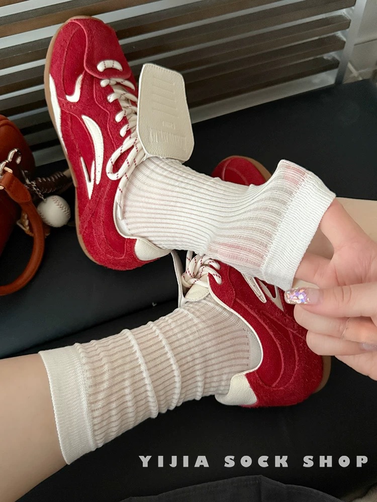 한국식 미니멀리스트 화이트 스택 양말 봄 여름 어린이를위한 단색 수직 패턴 올 매치 단순 기본 뼈없는 중간 길이 양말스토어 가기