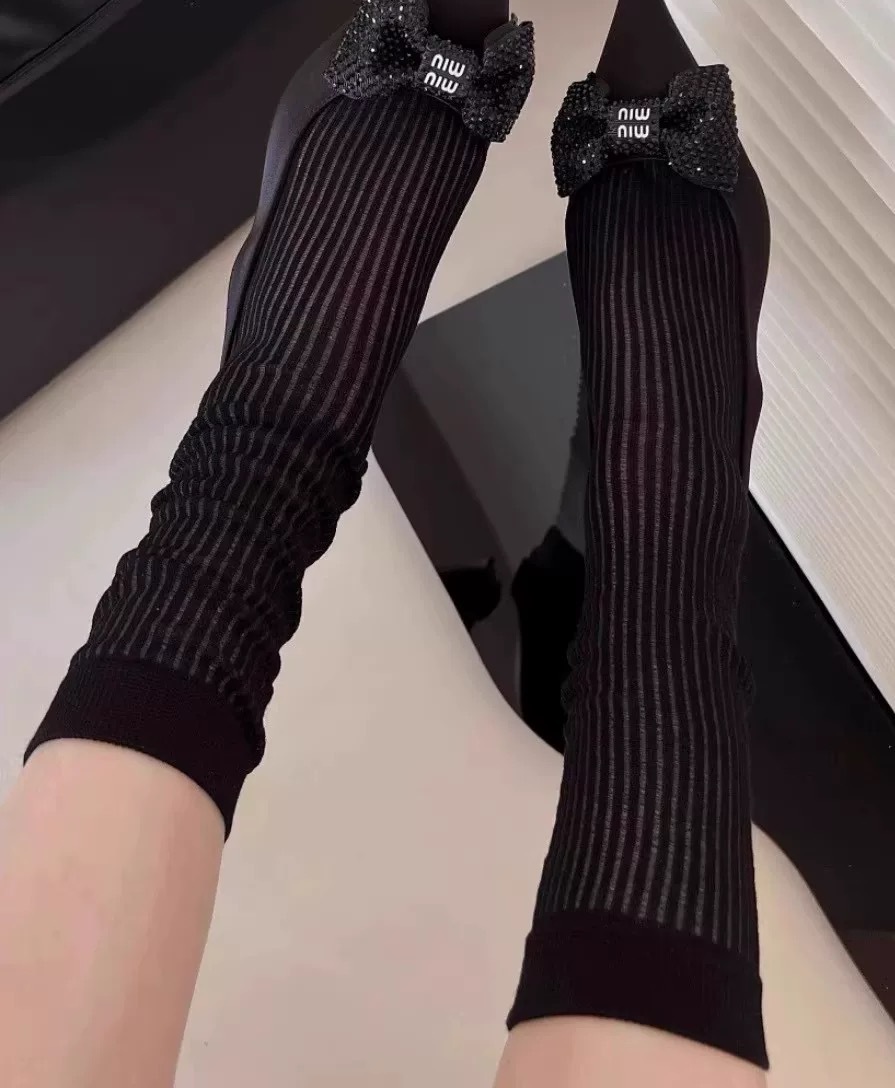 秋冬新品songmu韩国ins灰色丝绒蝴蝶结雪花百搭潮袜棉无骨中筒袜 RMB:4.60