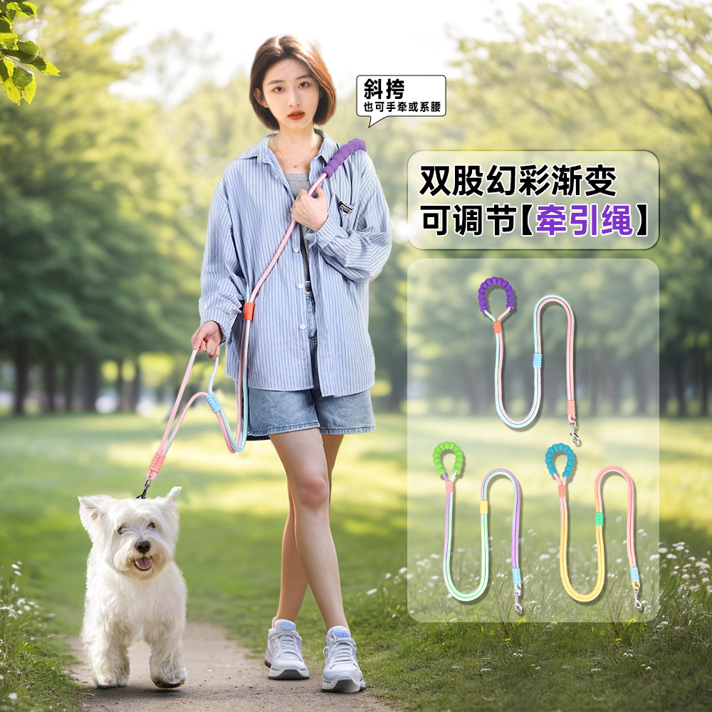 잃어버린 애완 동물 아티팩트 더블 스트랜드 조정 가능한 크로스 바디 안티 손실 견인 로프 우주 레이어 버블 핸들 개 워킹 로프스토어 가기
