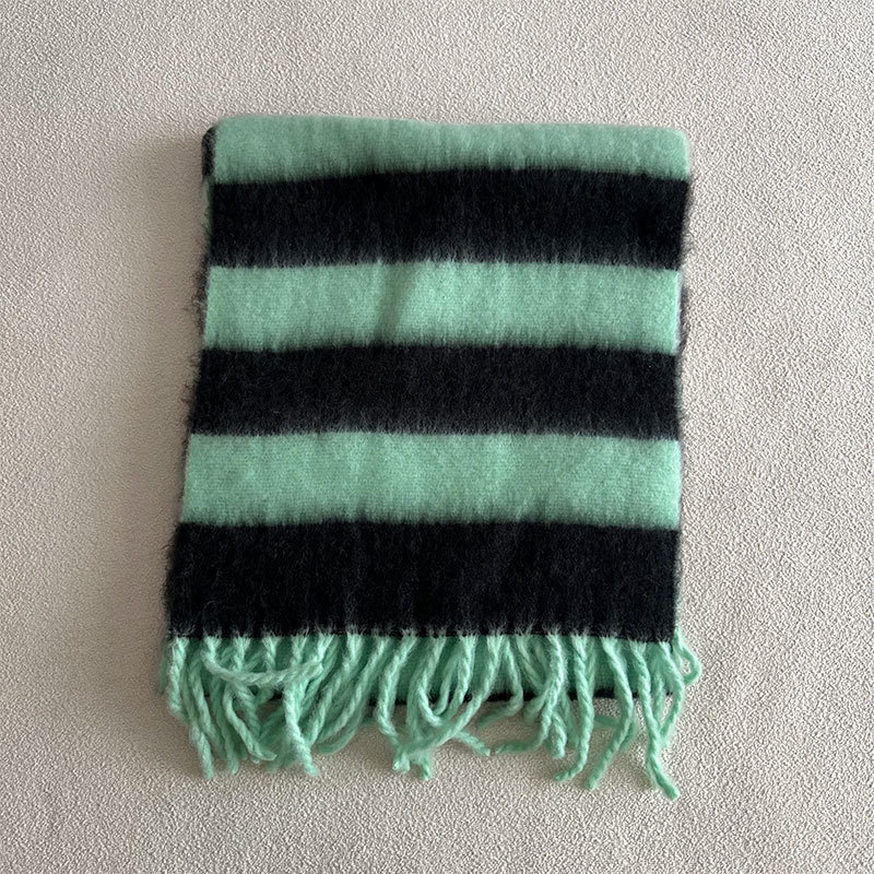 우아한 파란색 다크 브라운 색상 일치하는 줄무늬 아크릴 캐시미어 스카프 여성의 겨울 두꺼운 모든 경기 따뜻한 목도리 이중 목적 스카프스토어 가기