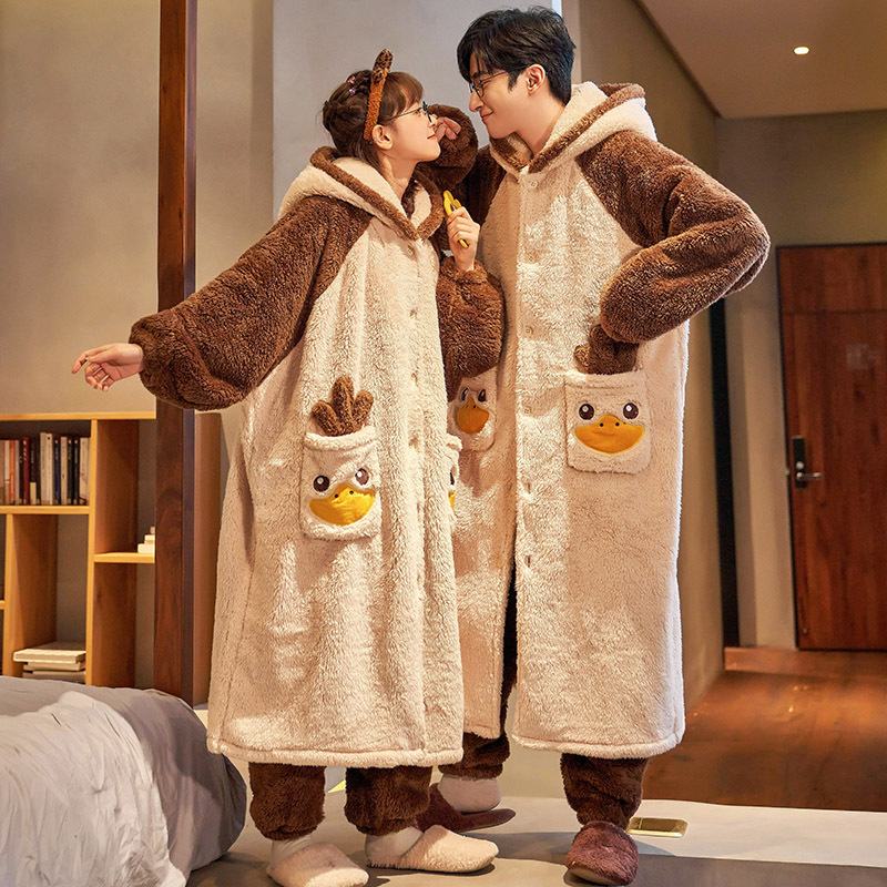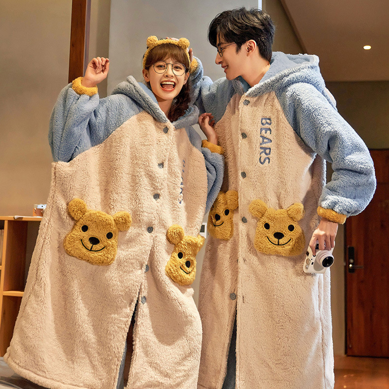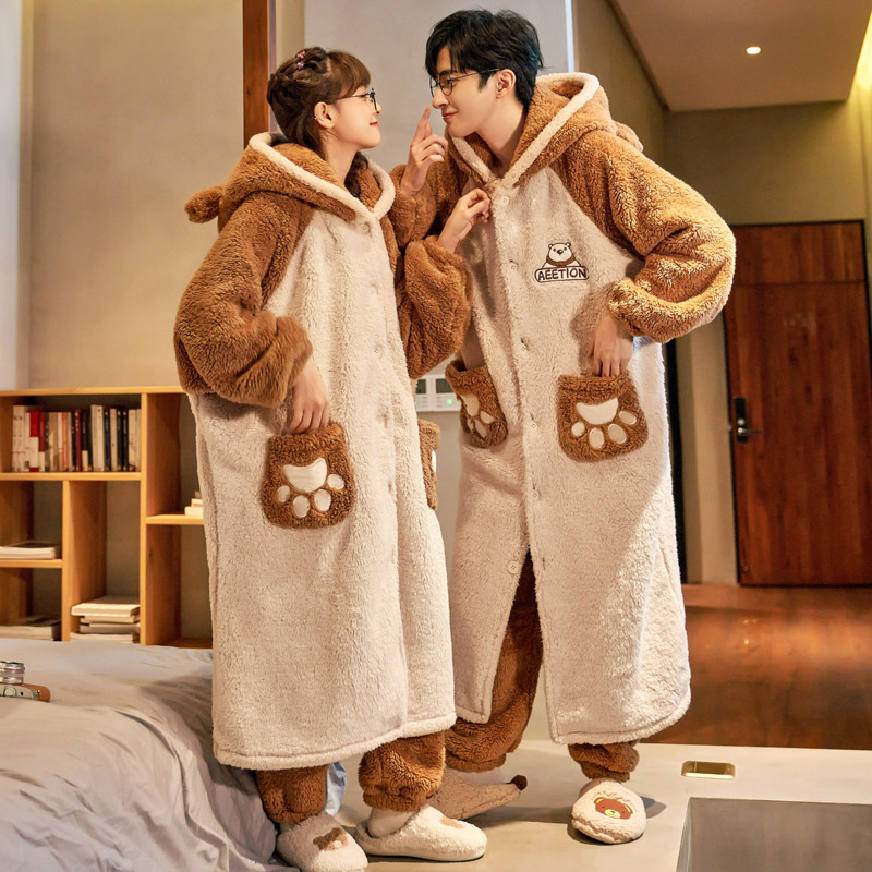 가을과 겨울 봉제 커플 잠옷 여성용 잠옷 귀여운 만화 잠든 로브 세트 잠옷 홈 의류 남성 세트스토어 가기