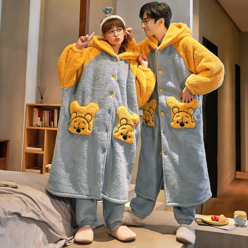 가을과 겨울 봉제 커플 잠옷 여성용 잠옷 귀여운 만화 잠든 로브 세트 잠옷 홈 의류 남성 세트