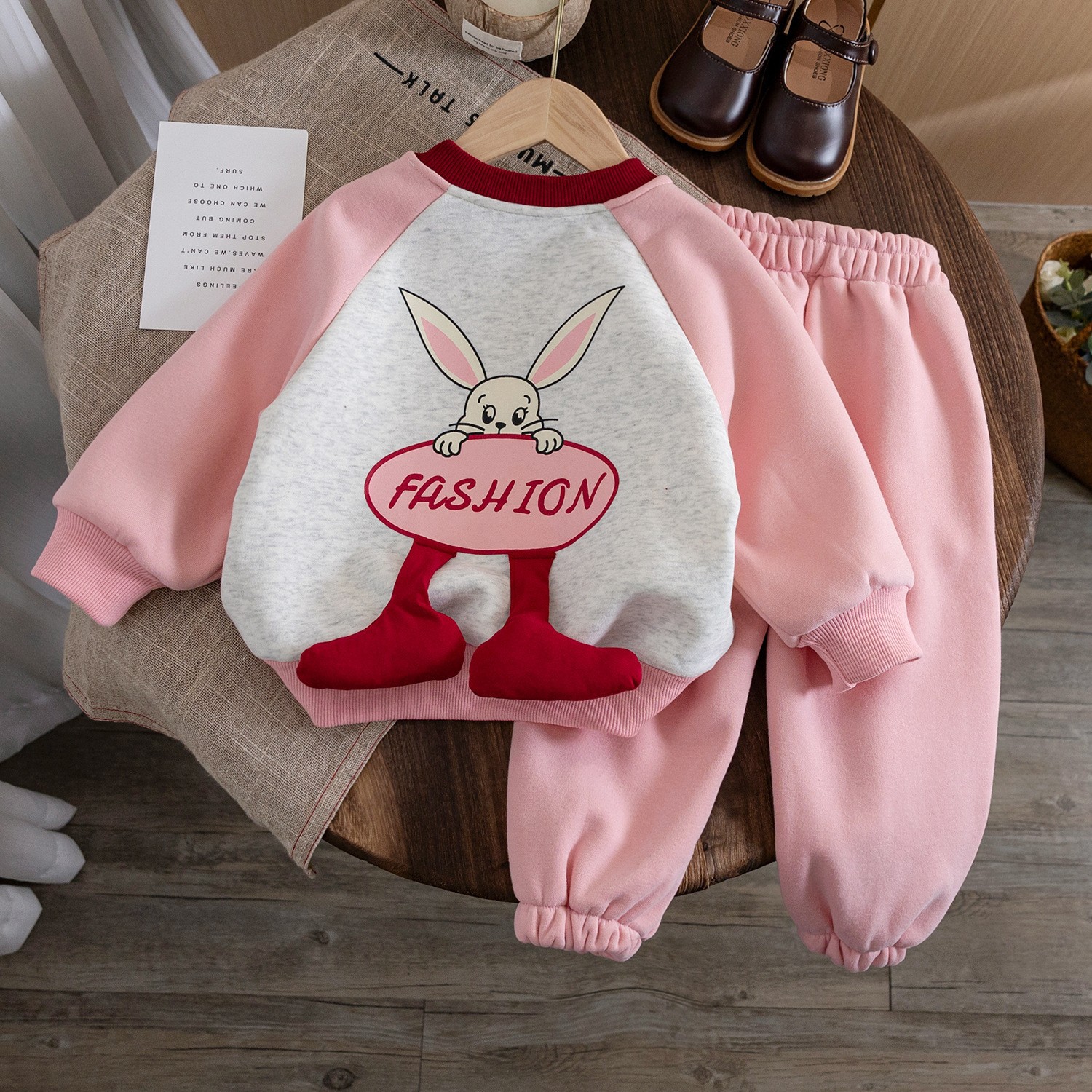 여자 기모 고양이 세트 2024 새로운 한국 어린이 착용 아기 소녀의 가을/겨울옷 투피스 겨울 옷
