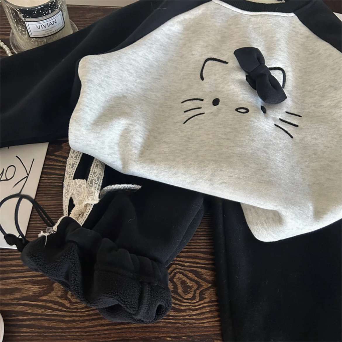 여자 기모 고양이 세트 2024 새로운 한국 어린이 착용 아기 소녀의 가을/겨울옷 투피스 겨울 옷스토어 가기