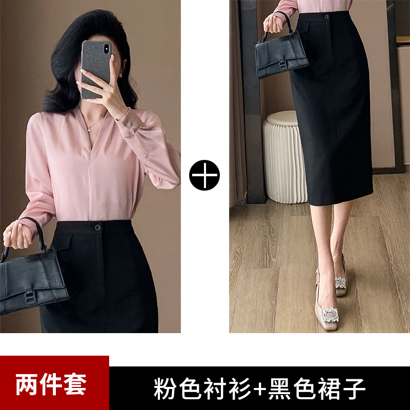 • 5991 핑크 셔츠 + 5237Q 블랙 스커트