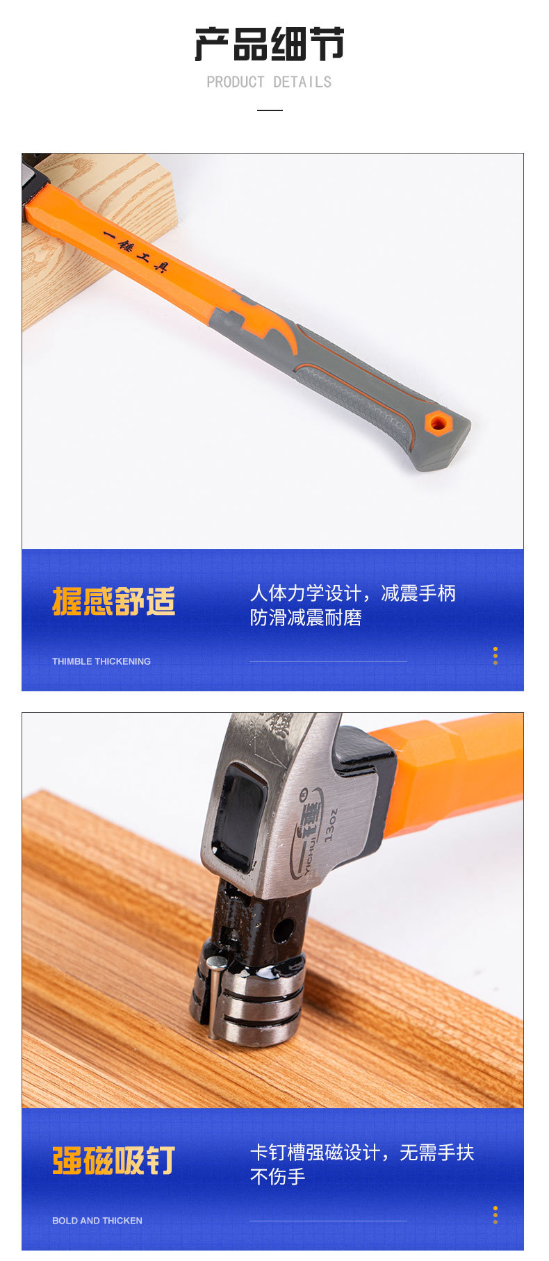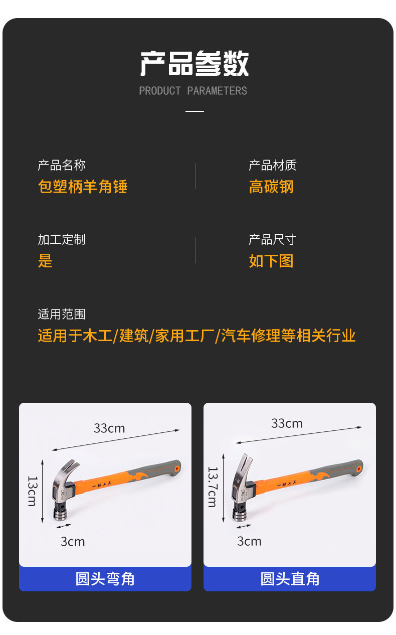 발톱 해머 높은 탄소 특수 강철 절연 핸들 플라스틱 코팅 다기능 해머 미끄럼 방지 핸들 내구성 클로 해머 공장