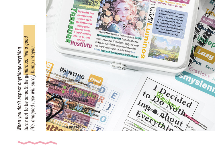 언어 유휴 애완 동물 영어 스티커 책 예기치 않은 만남 시리즈 바람 방수 소재 손 계정 diy goo 카드 장식 스티커스토어 가기